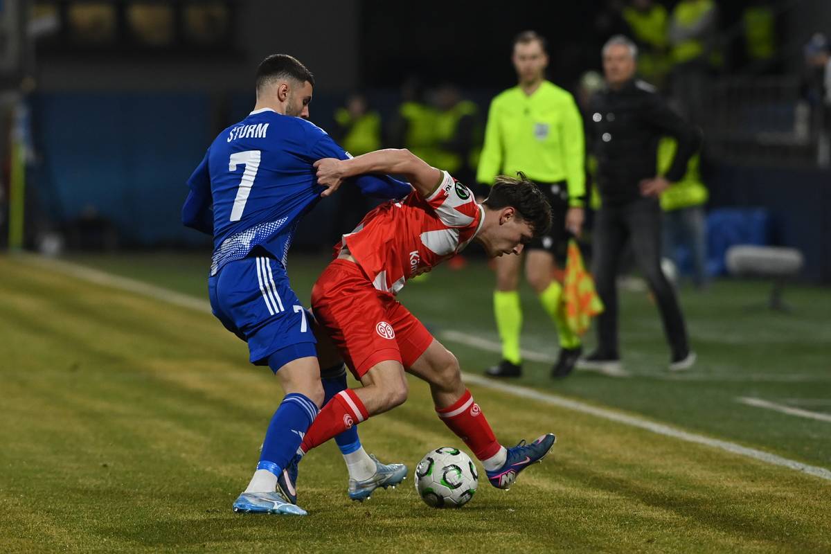 Danijel Šturm v akci proti bundesligovému soupeři.