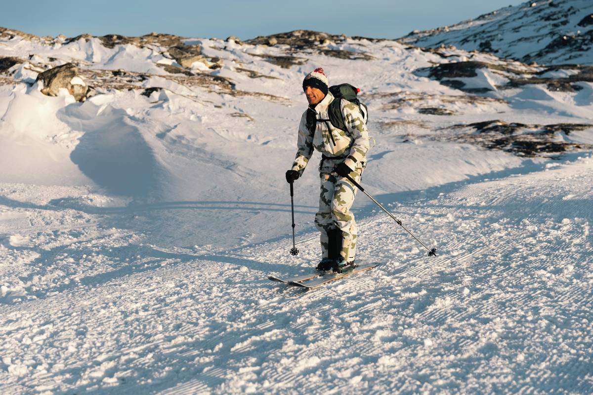Lyžař na hoře Quassussuaq (Lille Malene)