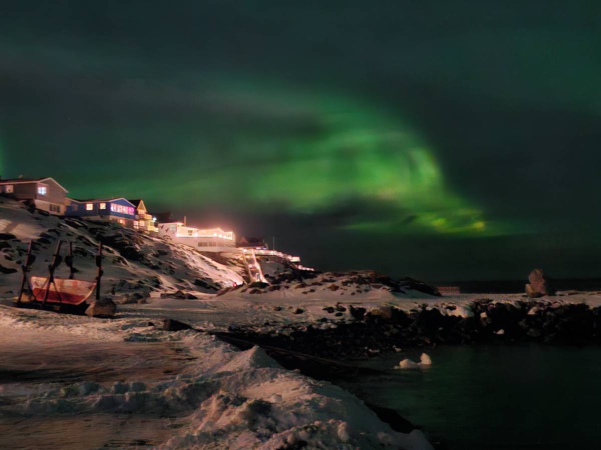 Polární záře na pobřeží Nuuku