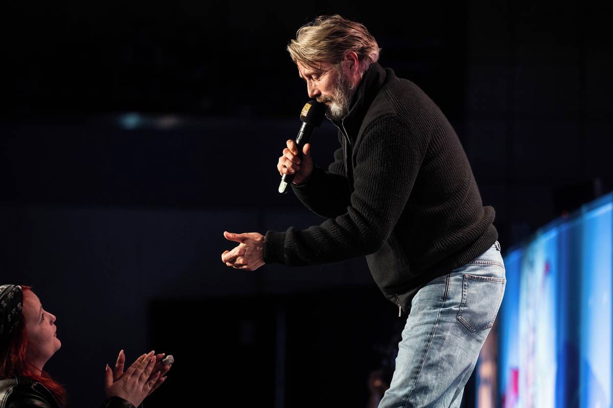Vpodvečer měl Mikkelsen v hlavním sále besedu, kterou pořadatelé streamovali také do druhého největšího sálu.