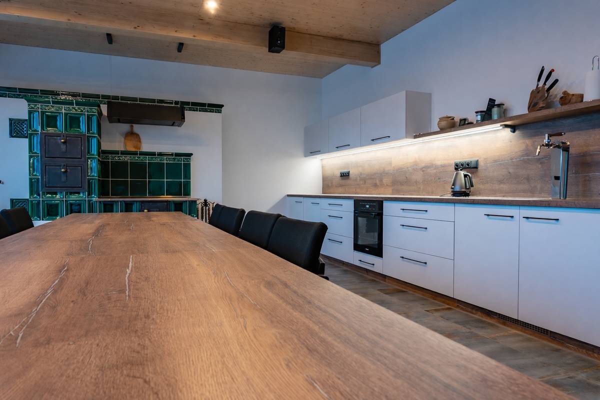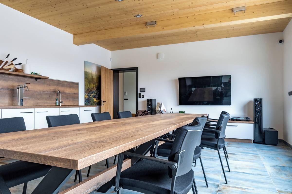Velká společenská Haffo místnost má vlastní kuchyňskou zónu.