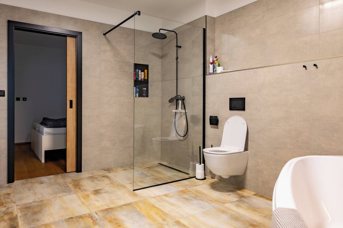V domě jsou tři koupelny, pro každou část rodiny jedna. Díky tomu mají všichni své soukromí.