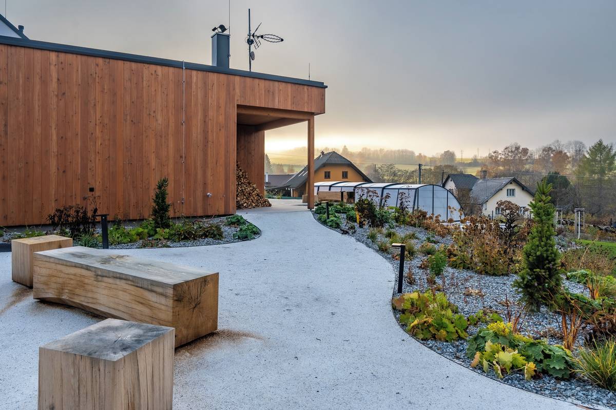 V okolí domu mají majitelé hned několik posezení.