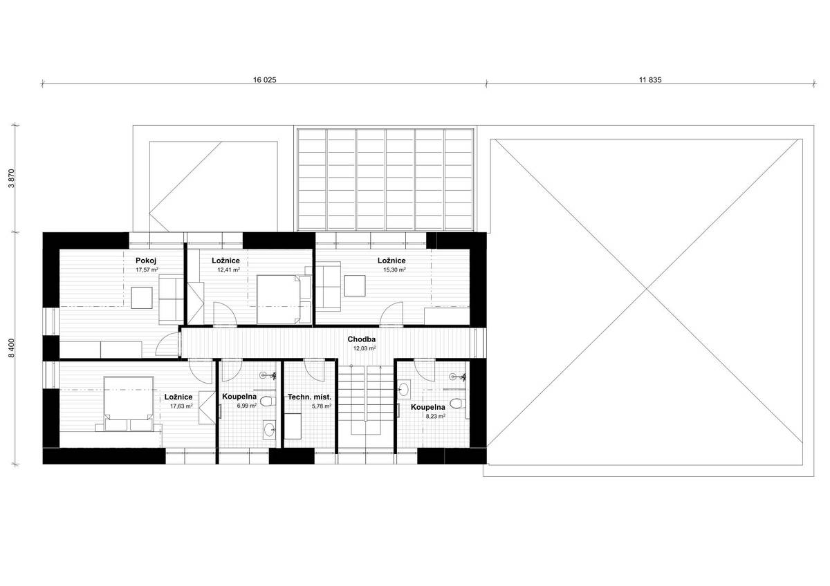 Dům je navržený dostatečně velký, nikde nemá člověk pocit jakékoli stísněnosti.