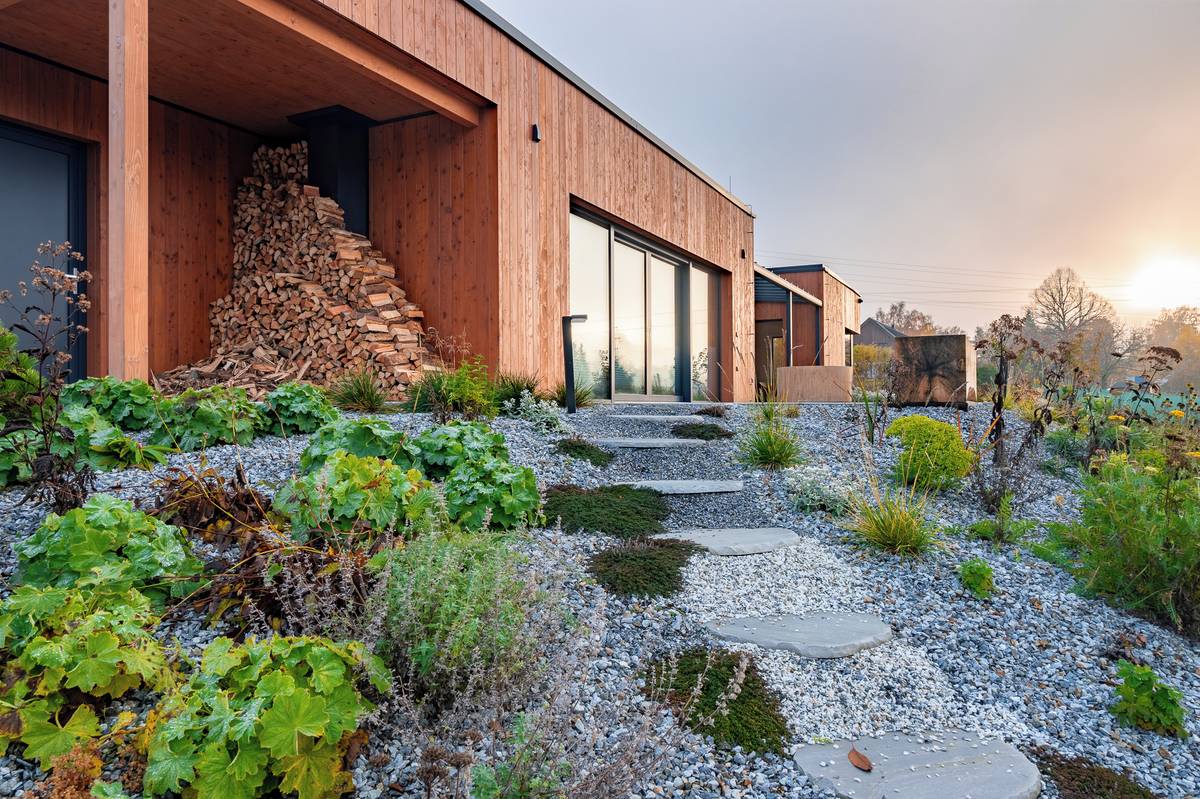 Dům je umístěný na severně orientovaném svahu.