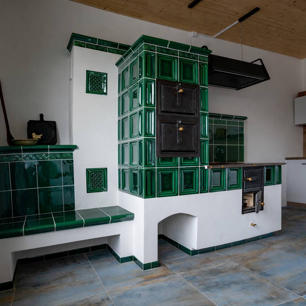 Kachlová pec byla prvkem, který si majitelé vysnili hned na začátku.