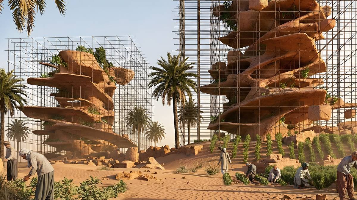 Mrakodrap Nebkha je zasazený do prostředí Íránské pouště Lut, nedaleko města Shadad a připadá stavby termitů. Autorem je tým architektů a designérů z Itálie.