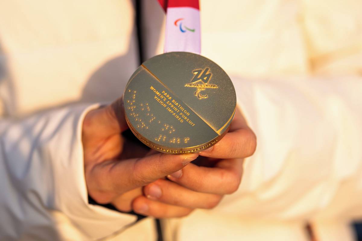 Paralympijská vítězka Carina Edlingerová se svou zlatou medailí