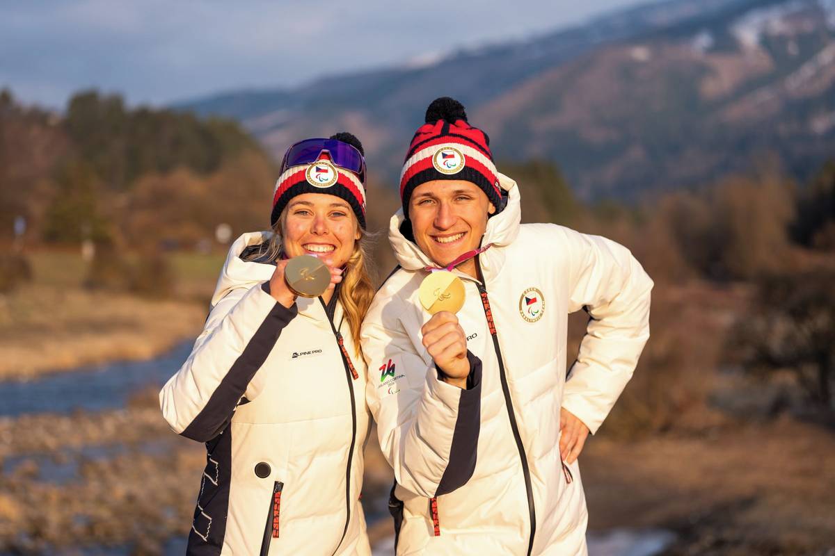 Simona Bubeníčková a trasér David Šrůtek se svými paralympijskými medailemi
