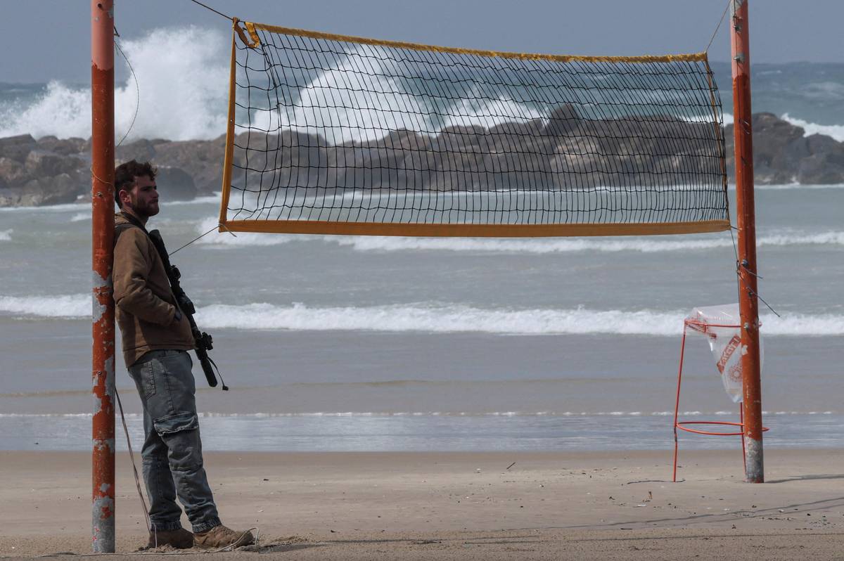 Izraelská obrana je při obraně velmi efektivní, ale ani ona nedokáže zachytit vše. Podrobné statistiky o její úspěšnosti během současné války ale zatím nejsou k dispozici. (Izraelský voják mimo službu na pláži, 15. března v Tel Avivu.)