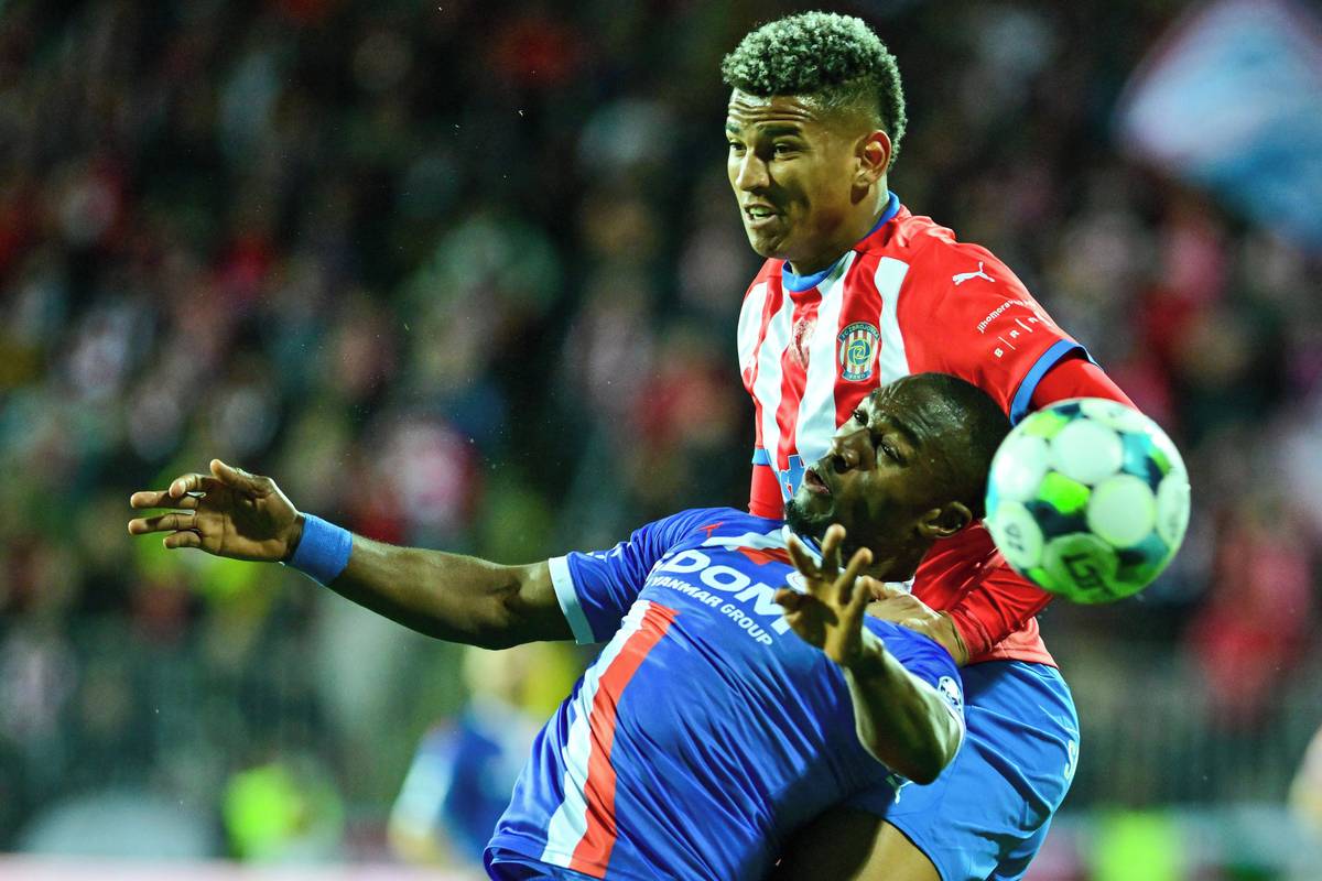 Quadri Adebayo Adediran z Artisu a Kauan Cameiro Da Silva ze Zbrojovky v osobním souboji