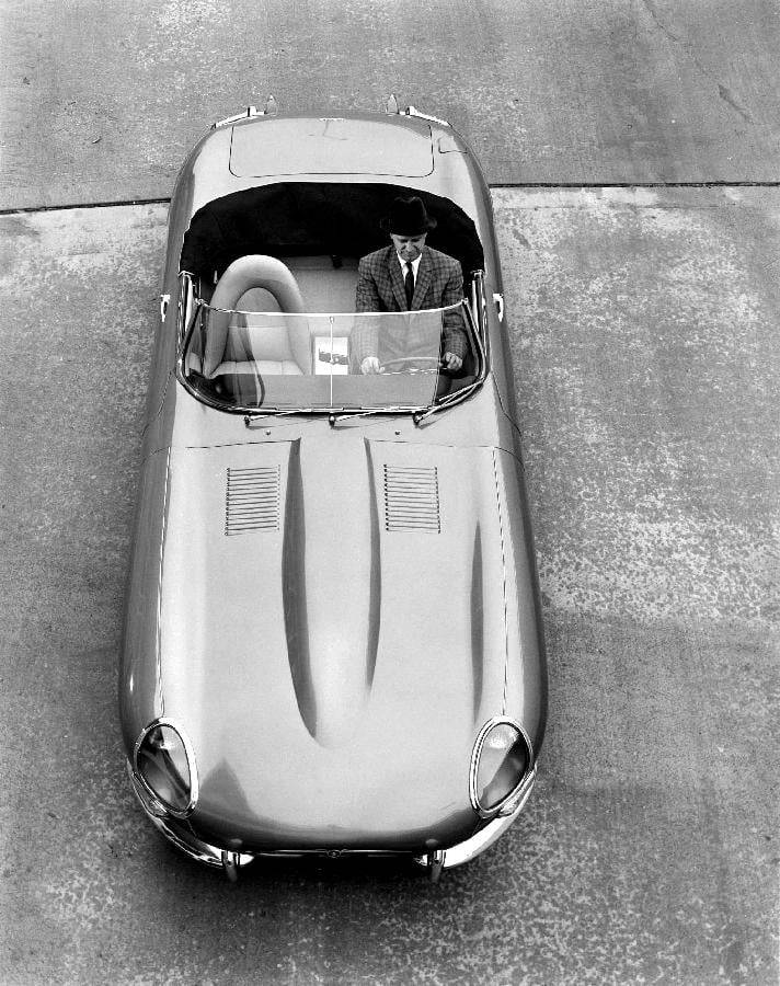 Sir William Lyons v roce 1961 představuje zástupcům tisku premiérový model