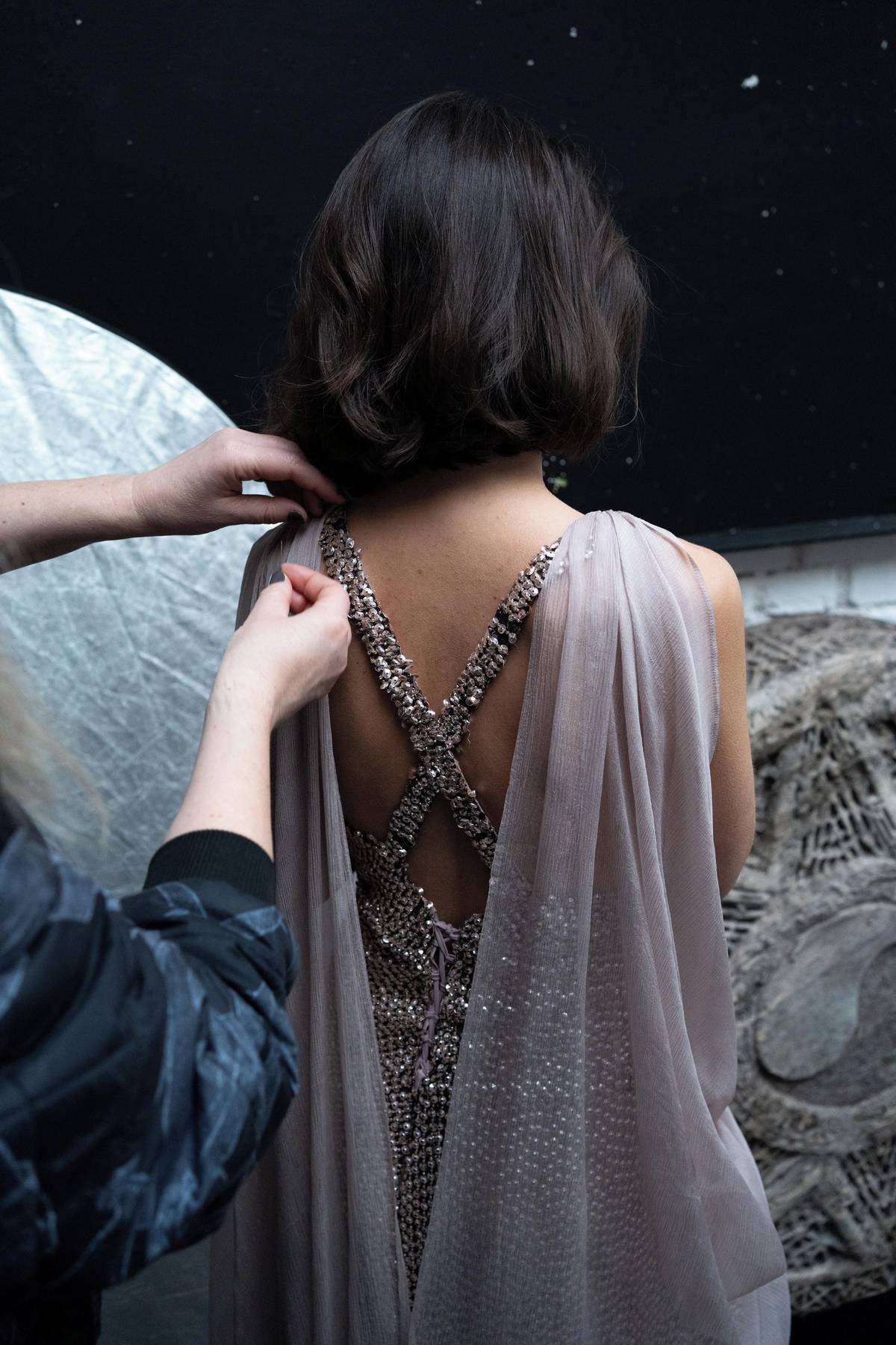 Model má odhalená záda s rafinovaným překřížením.