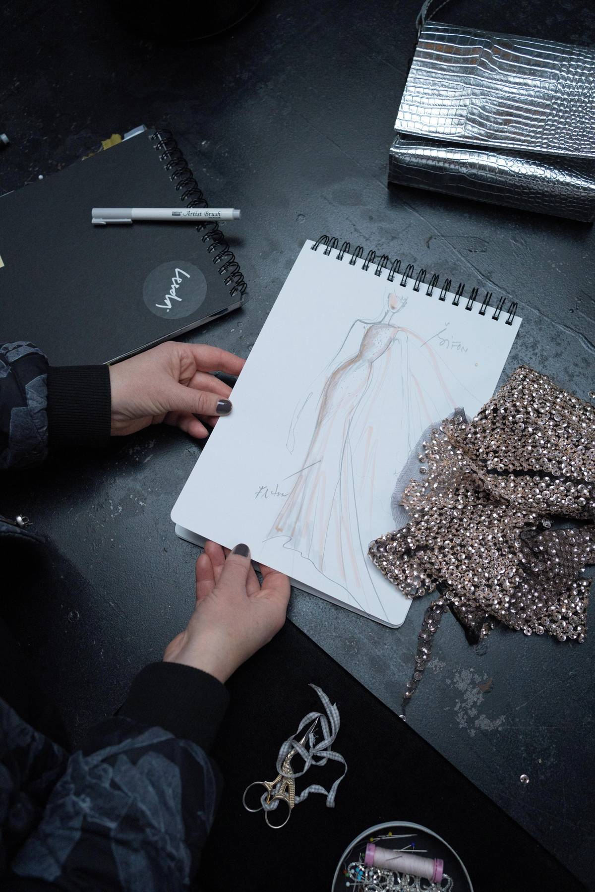Návrh šatů, které vznikly během dvou týdnů