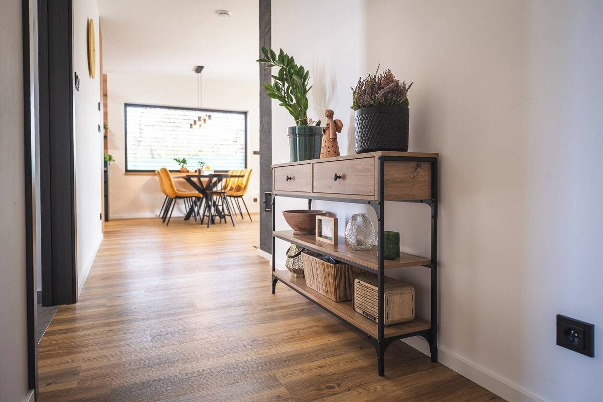 Pohled od vstupních dveří dovnitř domu.