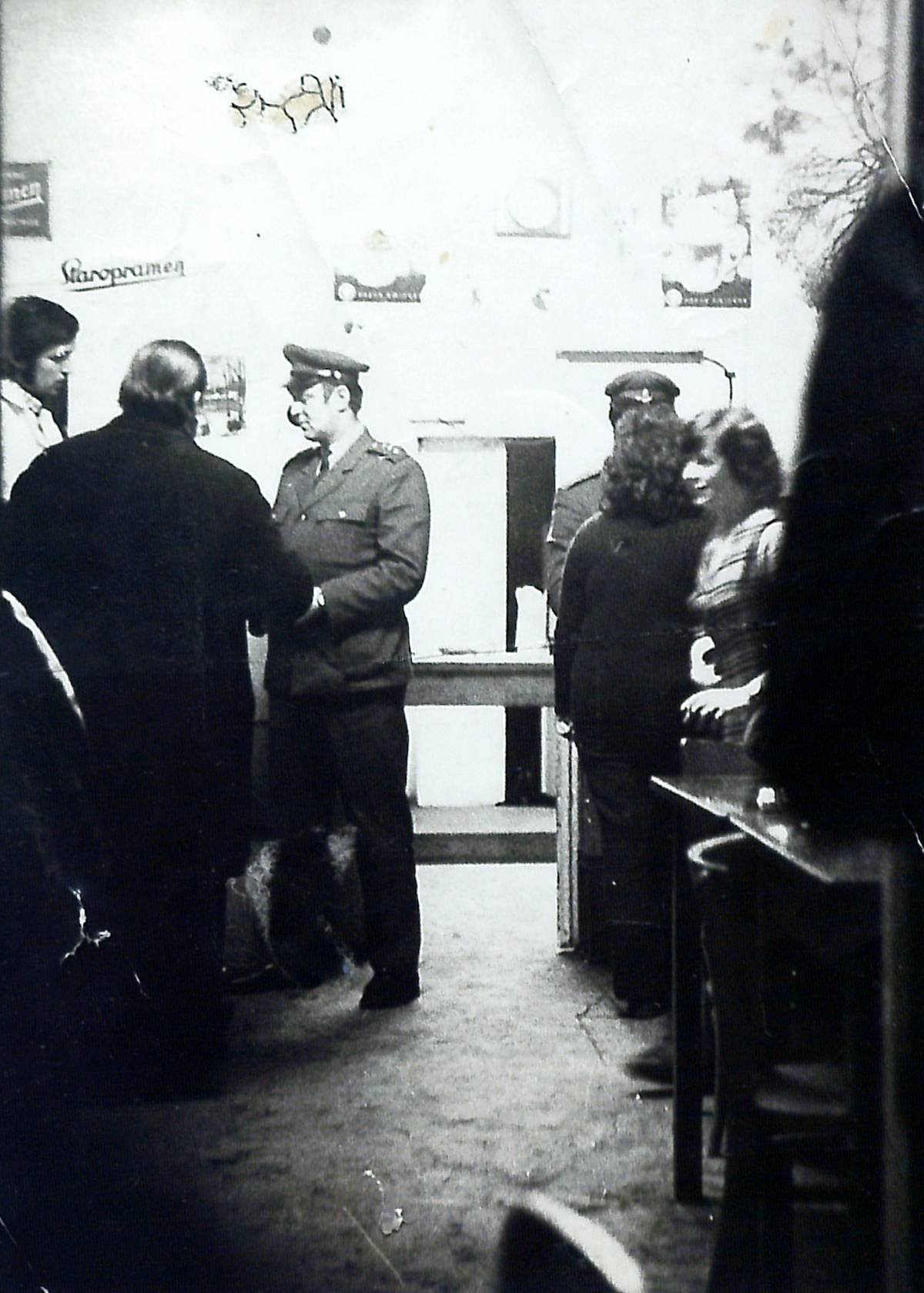 Perlustrace ze strany Veřejné bezpečnosti v Kostelci u Křížku, zády k objektivu Egon Bondy, 21. června 1975.