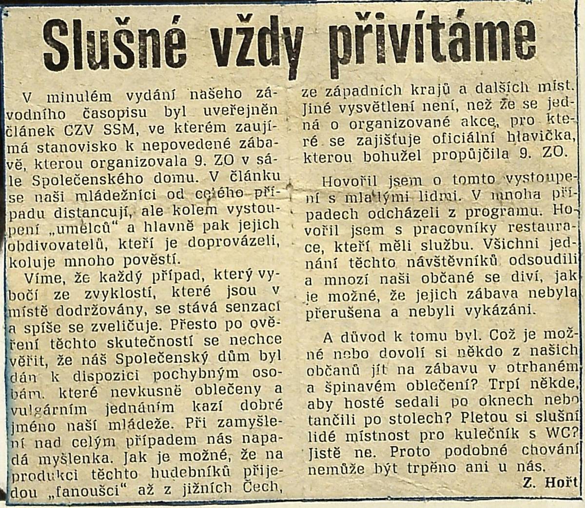 Negativní reakce na vystoupení Plastiků v časopisu Sázavan.