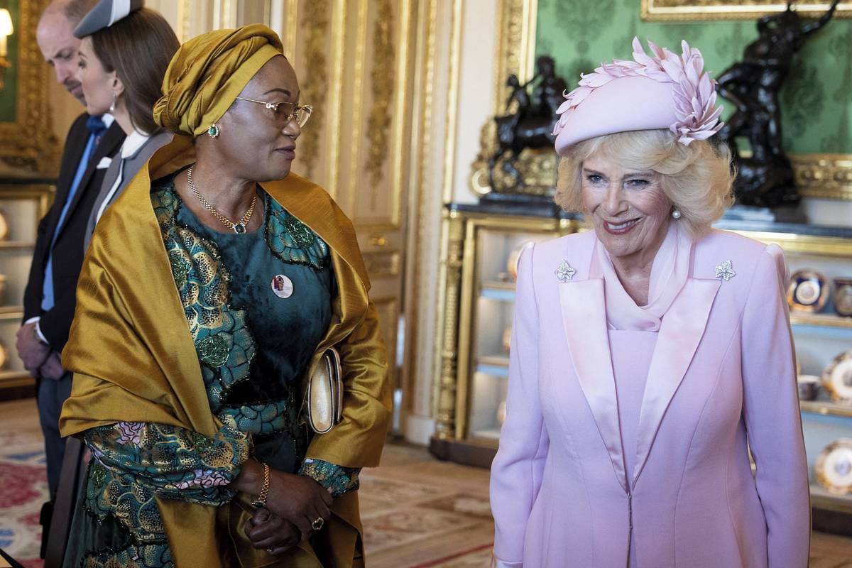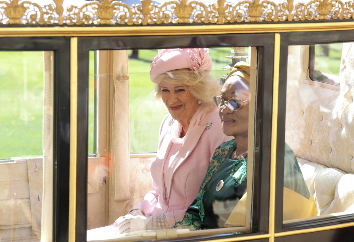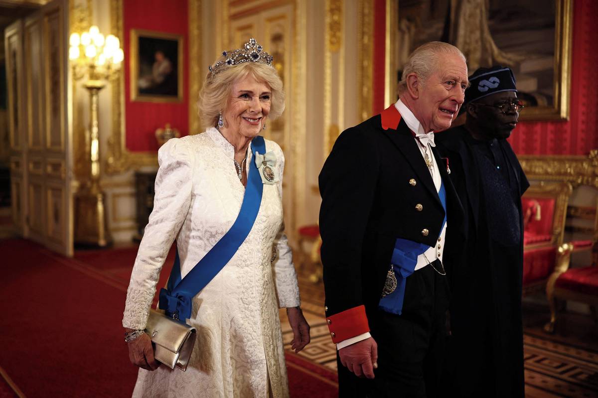 Dopoledne přijal královský pár nigerijského prezidenta Bola Ahmeda Tinubu s manželkou na hradě Windsor.