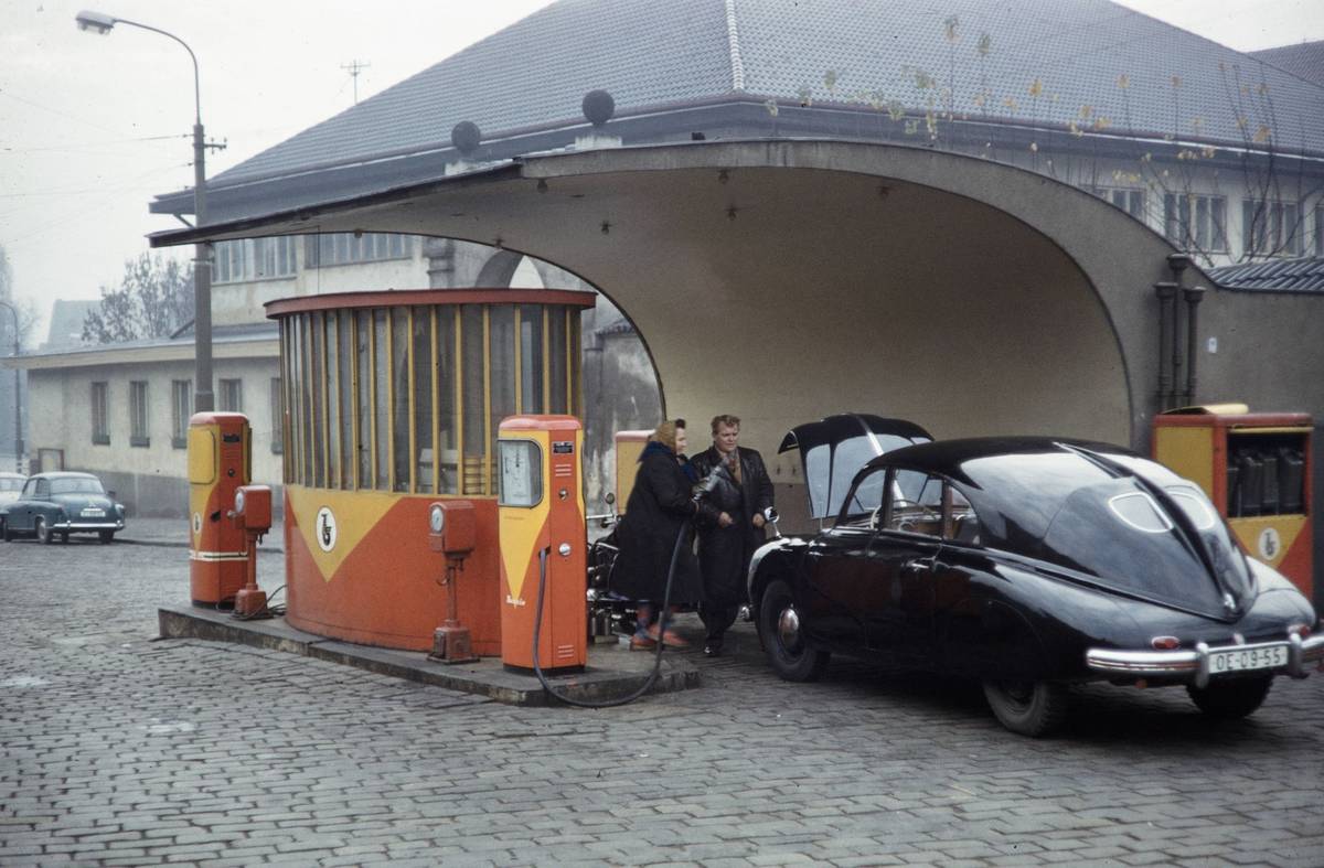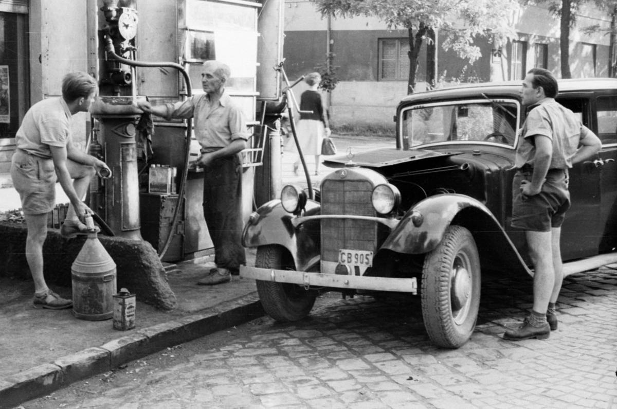 Stojany s palivem uprostřed rušné ulice? Dnes nemožné, před 70 lety realita.