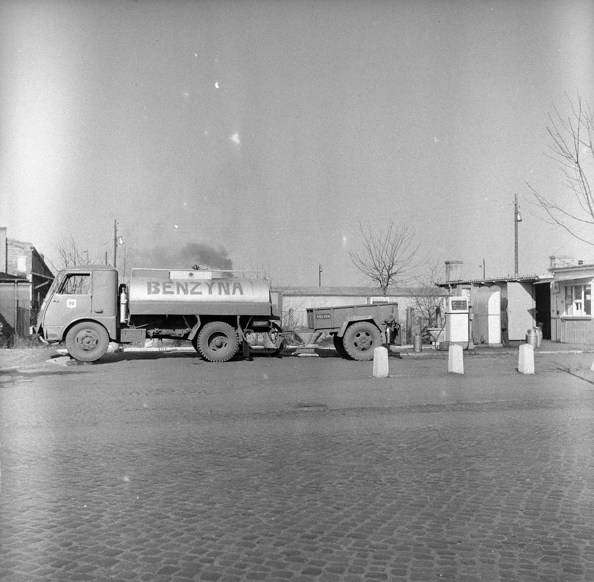 Doplňování jedné z čerpacích stranic na vesnici v Polsku v roce 1972, na snímku nákladní automobil značky Star.