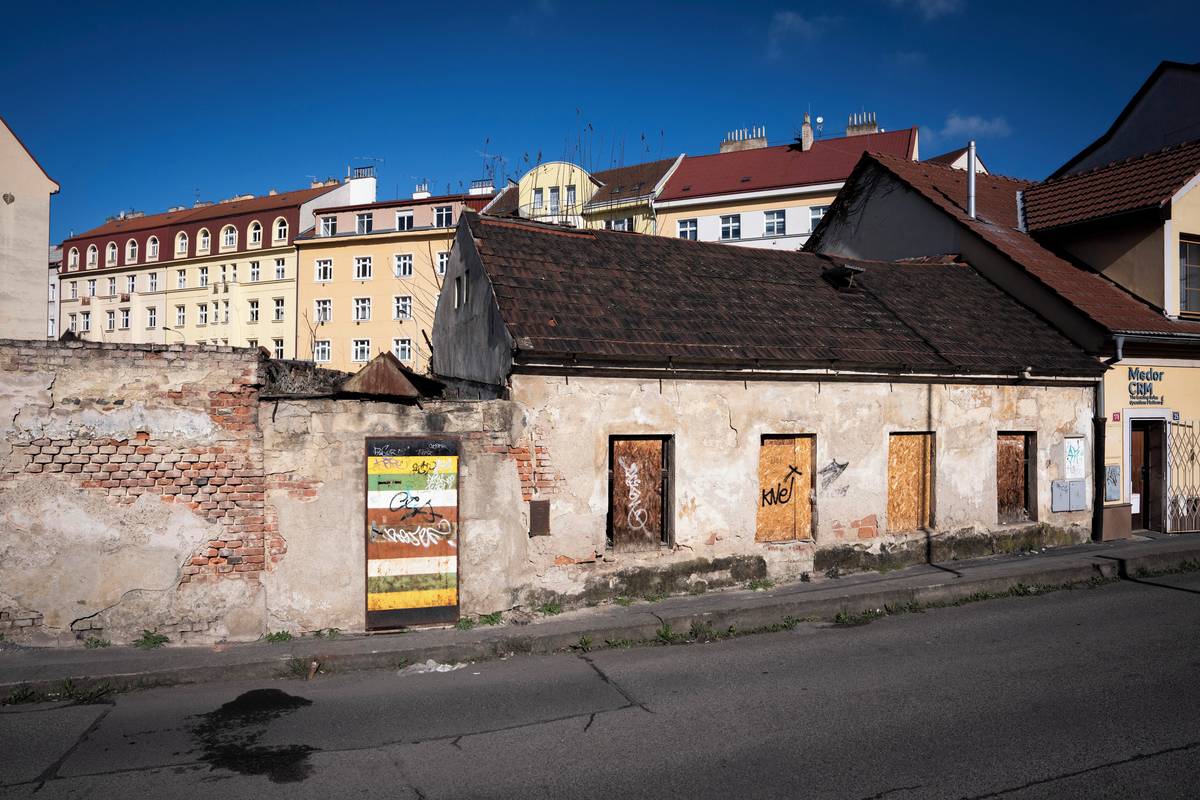 Pár minut jízdy od centra Prahy jde najít rozpadlé domy.