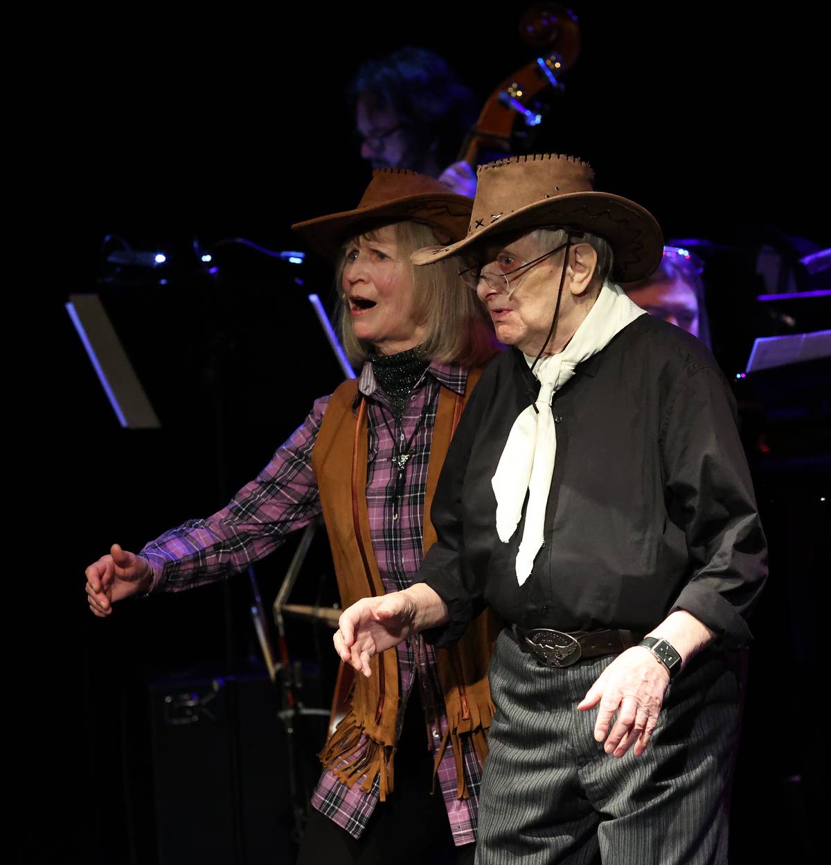 Kovbojská podoba Jitky Molavcové a Jiřího Suchého v Extravagantním díkuvzdání Jiřímu Šlitrovi