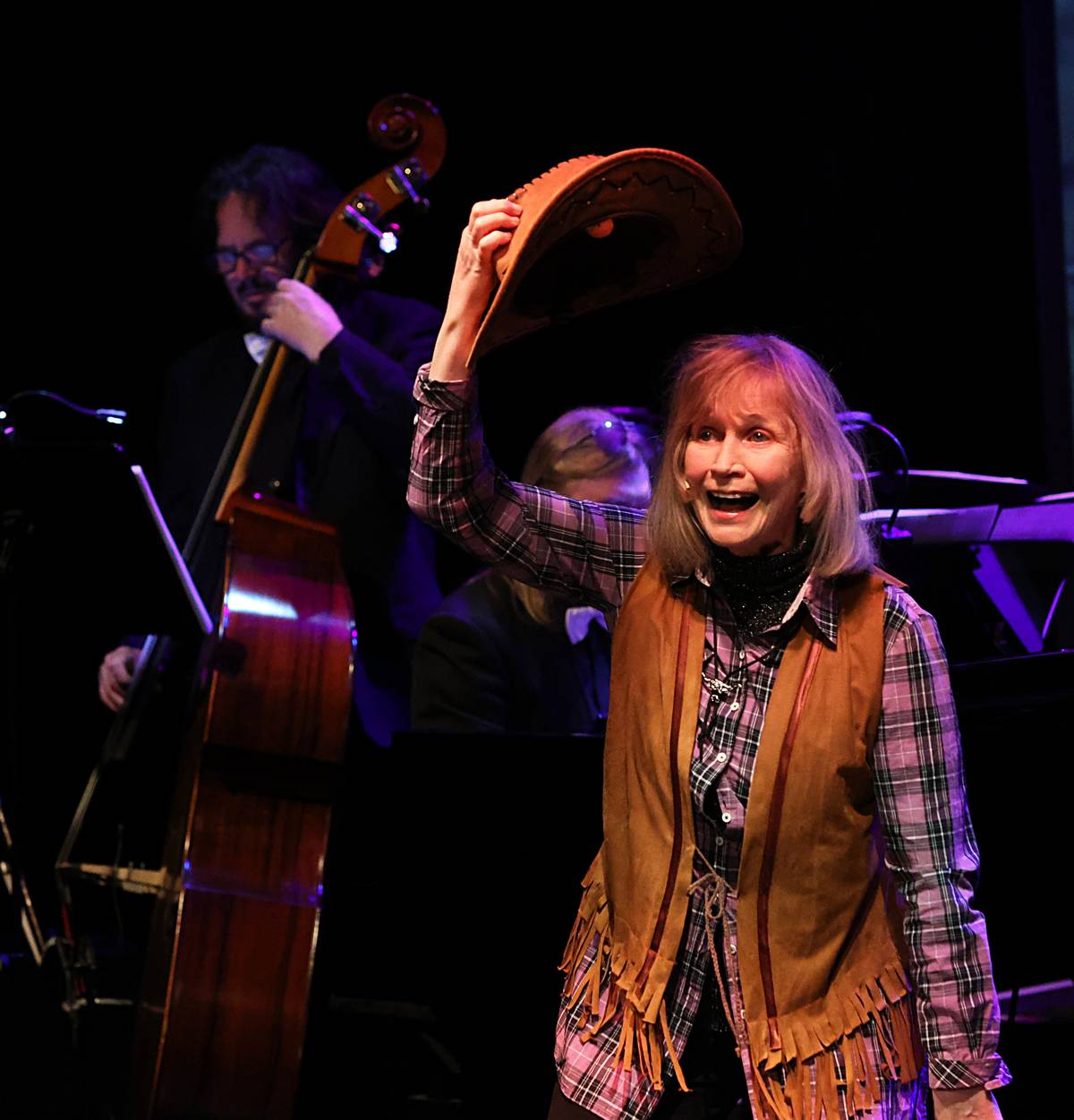 Jolana Haan Smyčková se členy Orchestru divadla Semafor, saxofonistou Davidem Vrobelem a kytaristou Vladimírem Vandrovcem. Oba jsou též zdatnými sólisty.