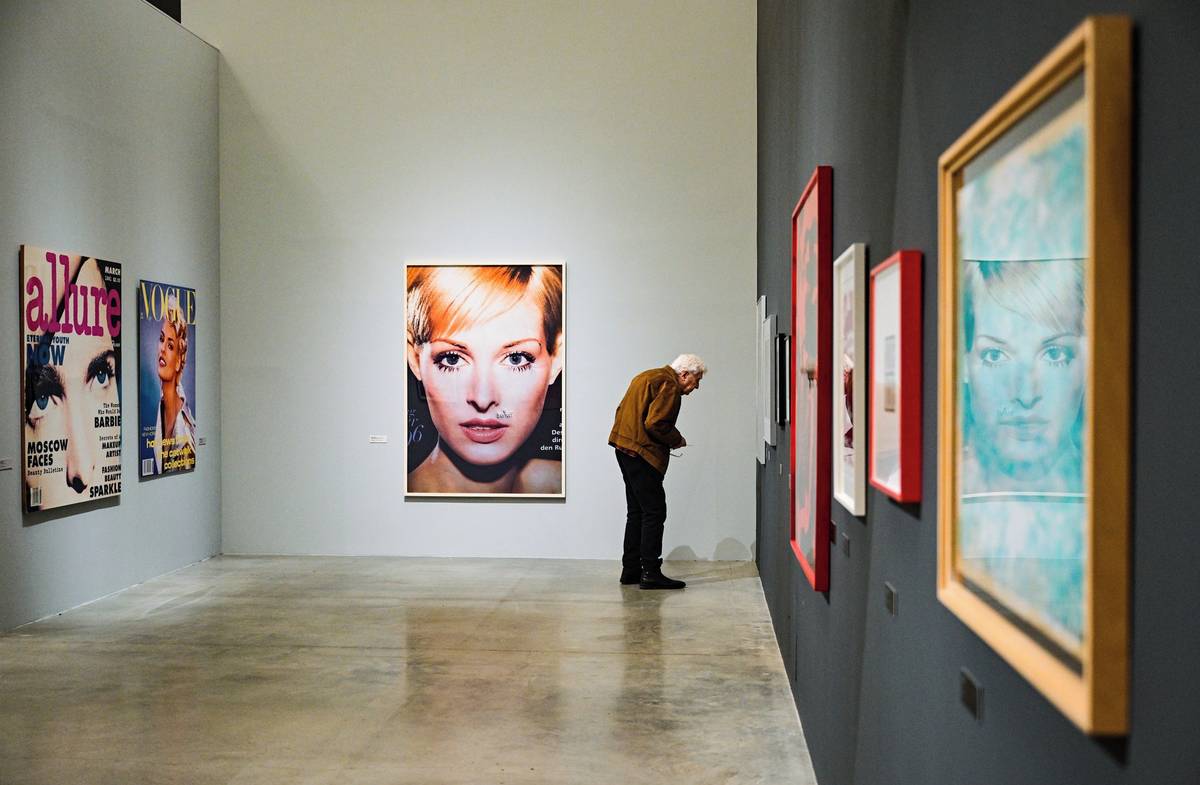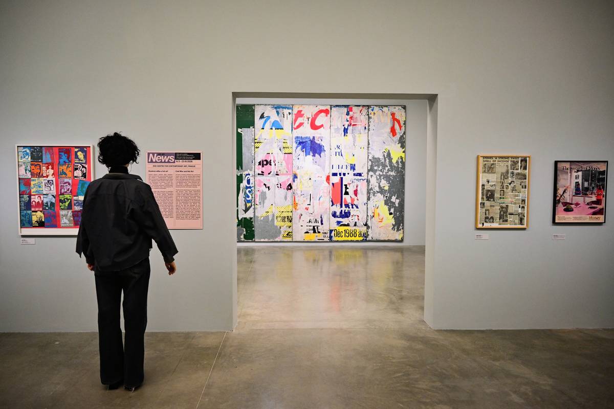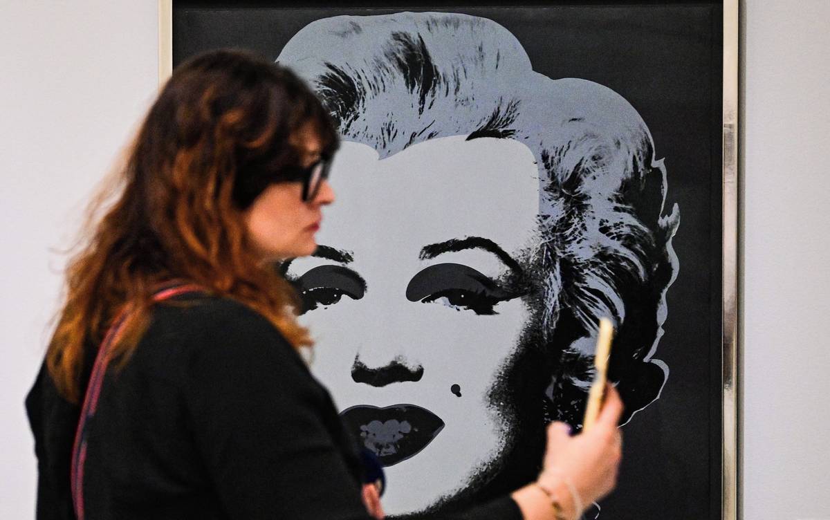 Na fotografii z výstavy Hit by News, která v pražském DOX 23. srpna, je Marilyn Monroe od Andyho Warhola z roku 1967.