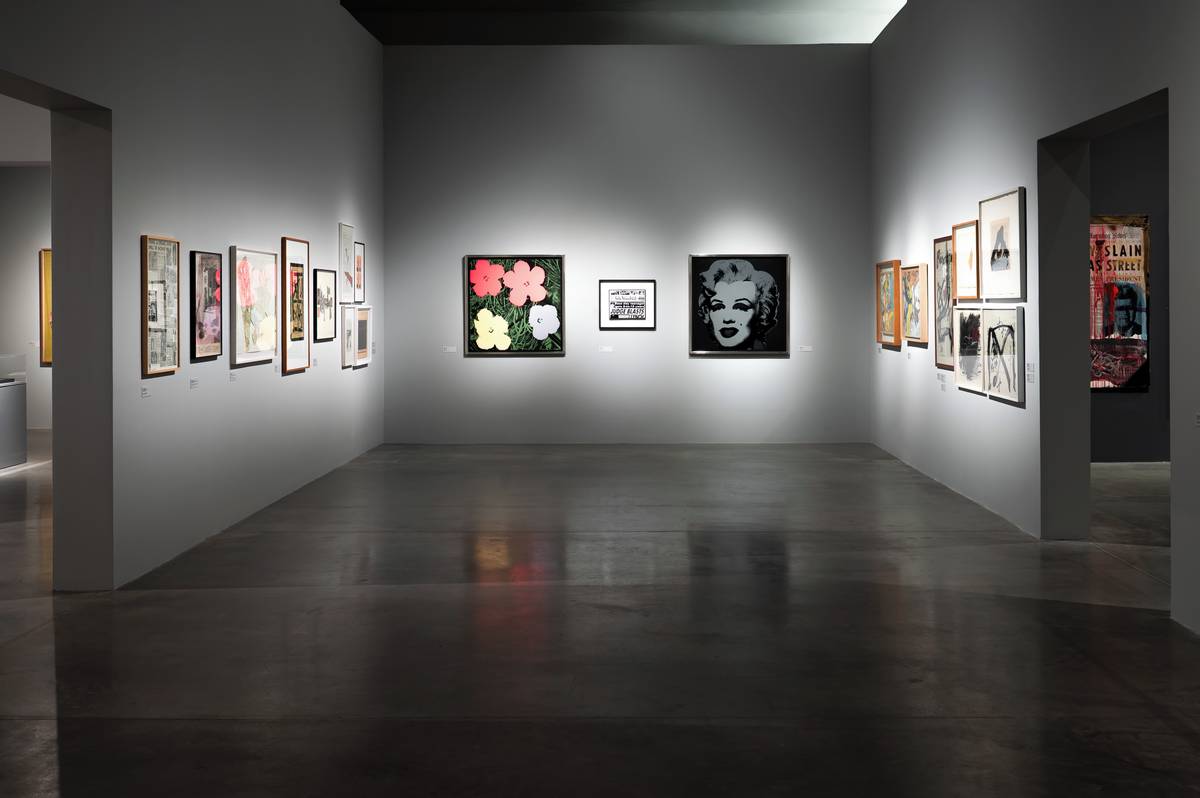 Vpravo nahoře je dílo Harlem Daily News, 1962 od Dennise Hoppera.