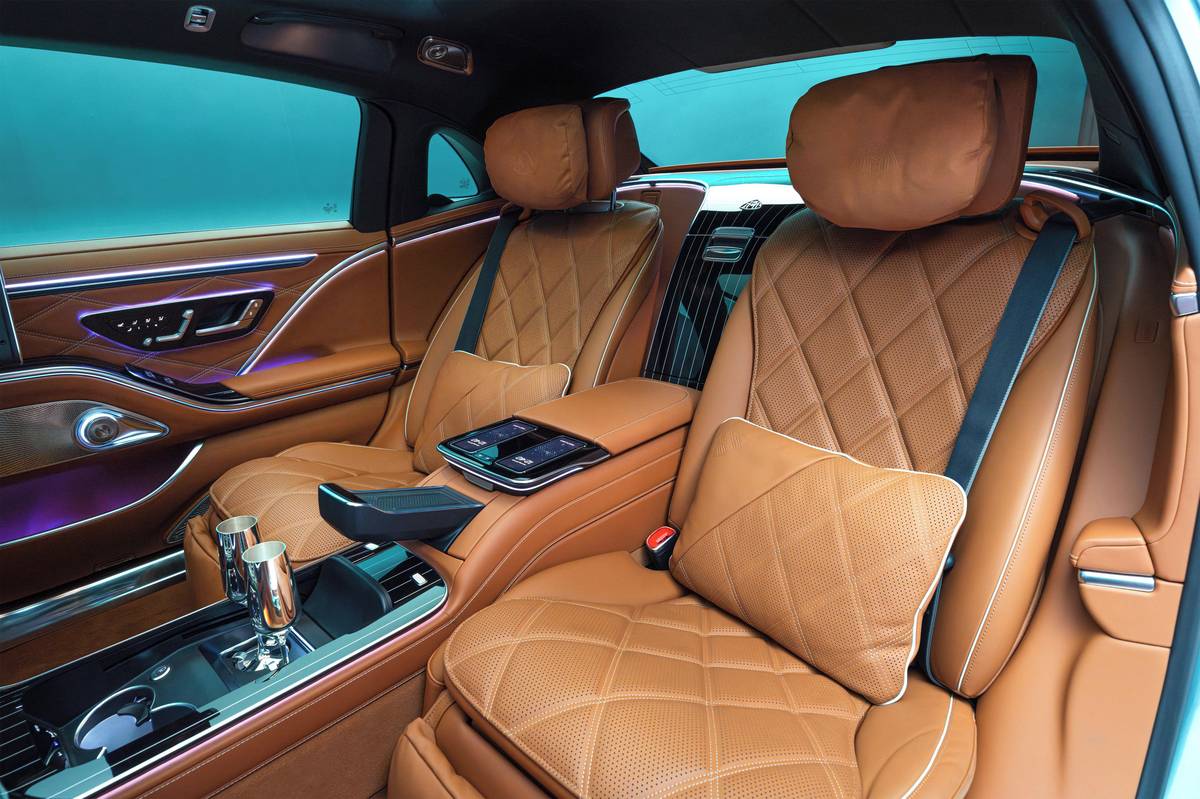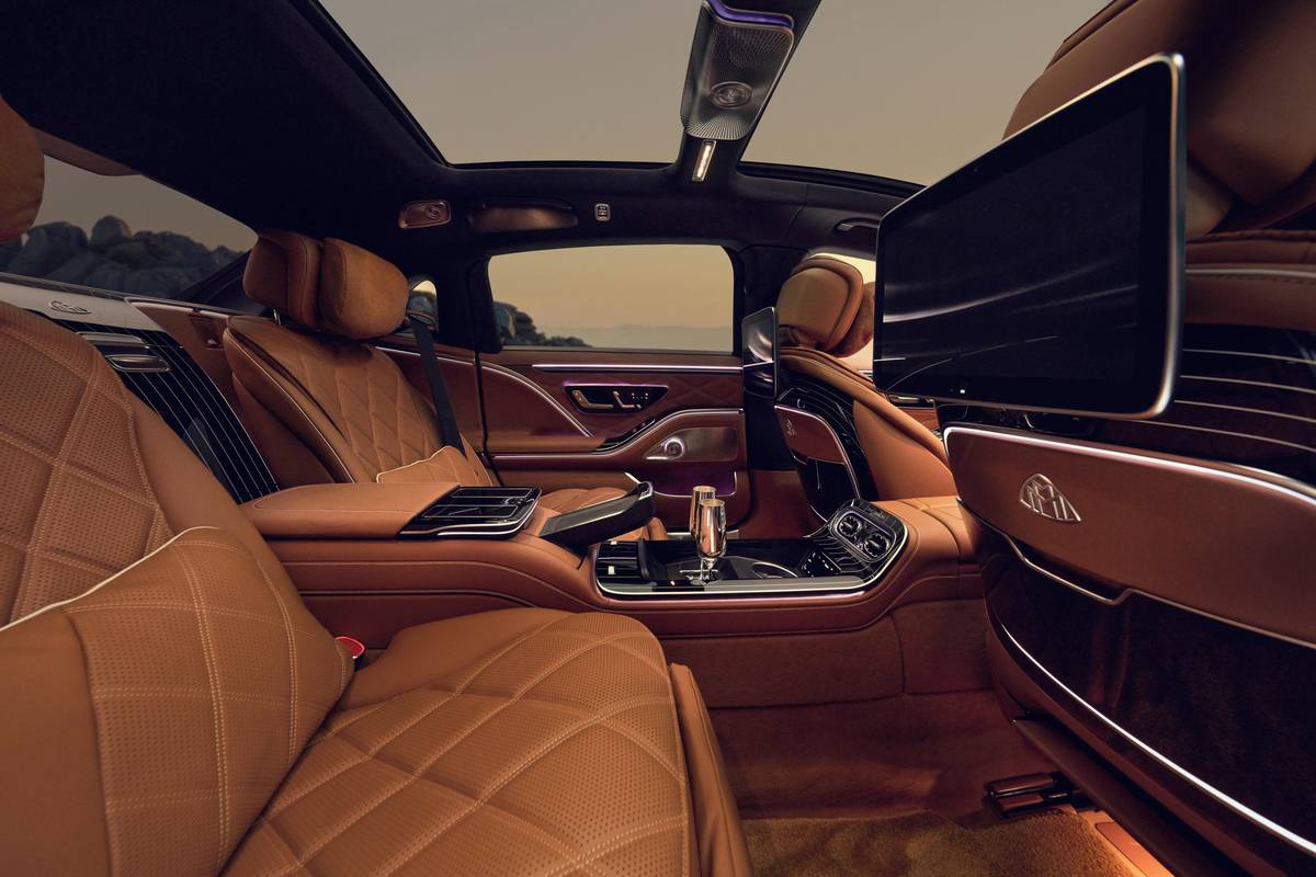 Vzadu jsou tradičně komfortní sedadla s vlastní obrazovkou, ledničkou a skleničkami na šampaňské.