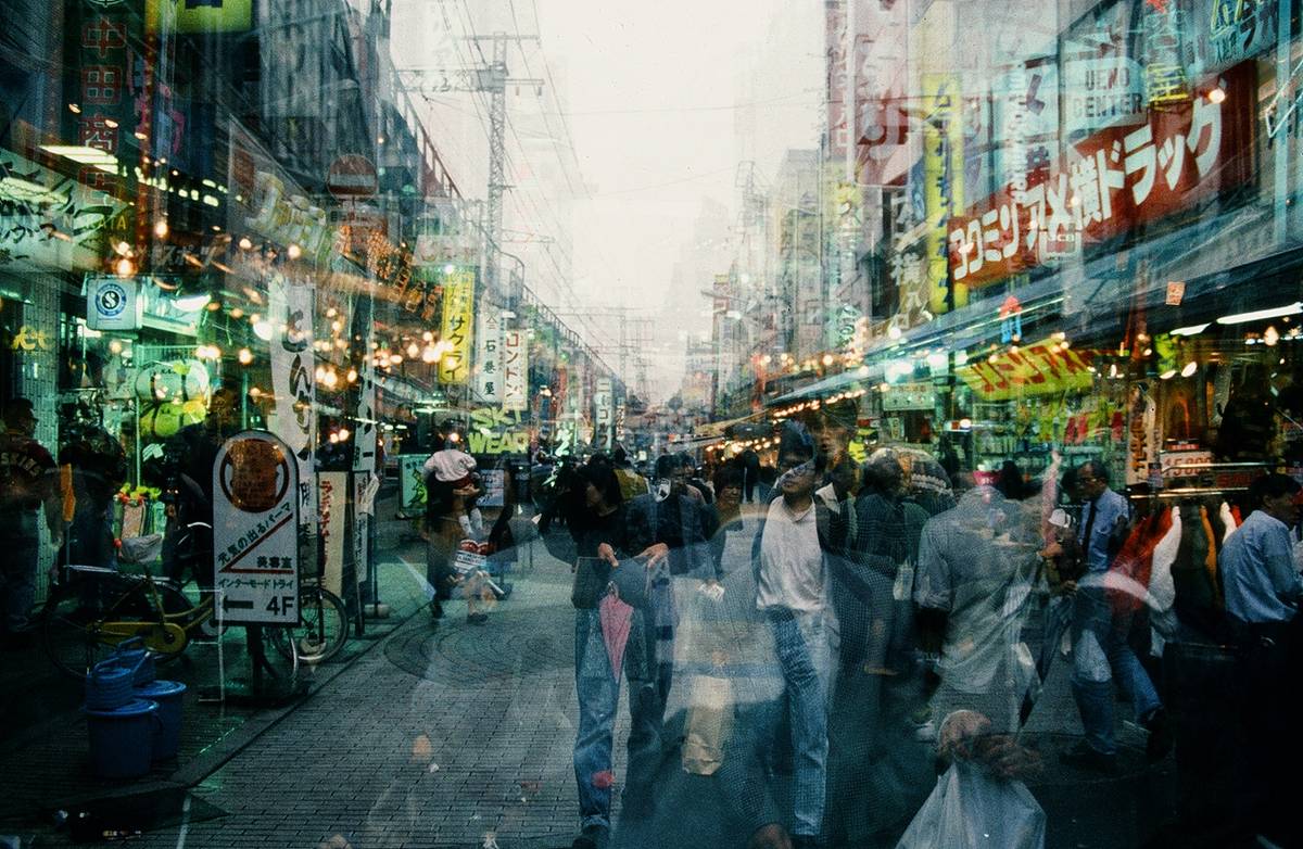 Petr Geisler: Ueno Street, 1987, Japonsko, víceexpozice.