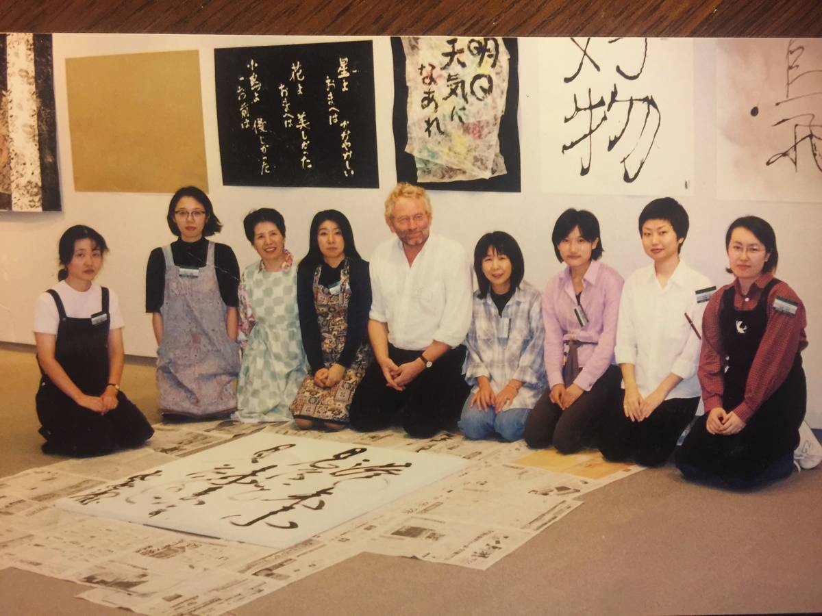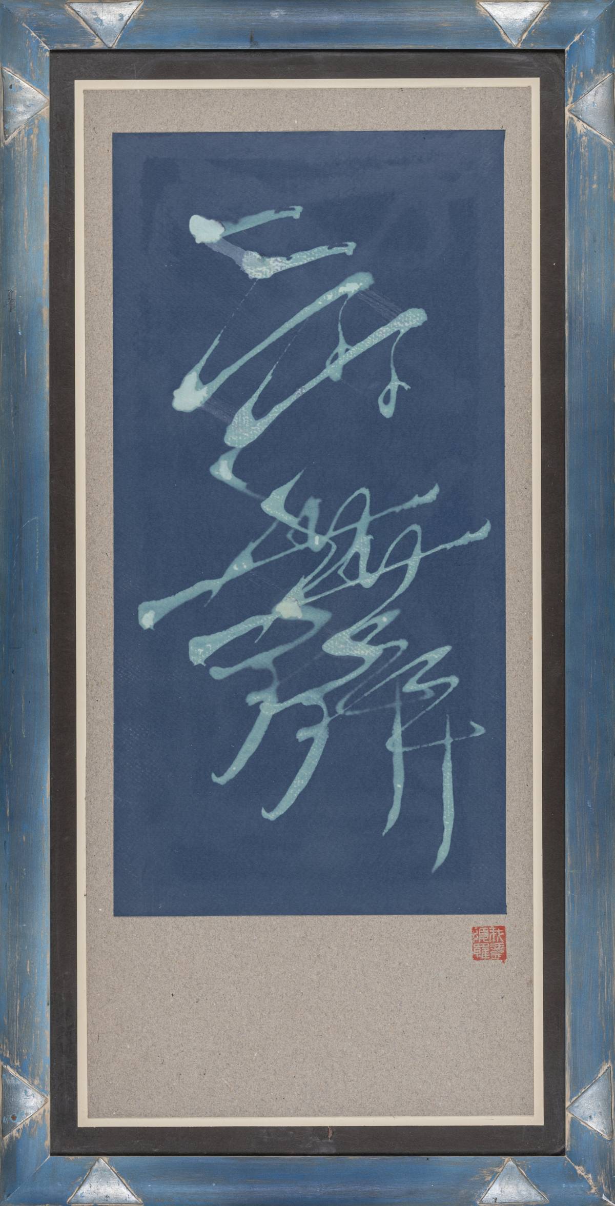Petr Geisler: Japonská kaligrafie, 2000, email a tuš na dřevě.