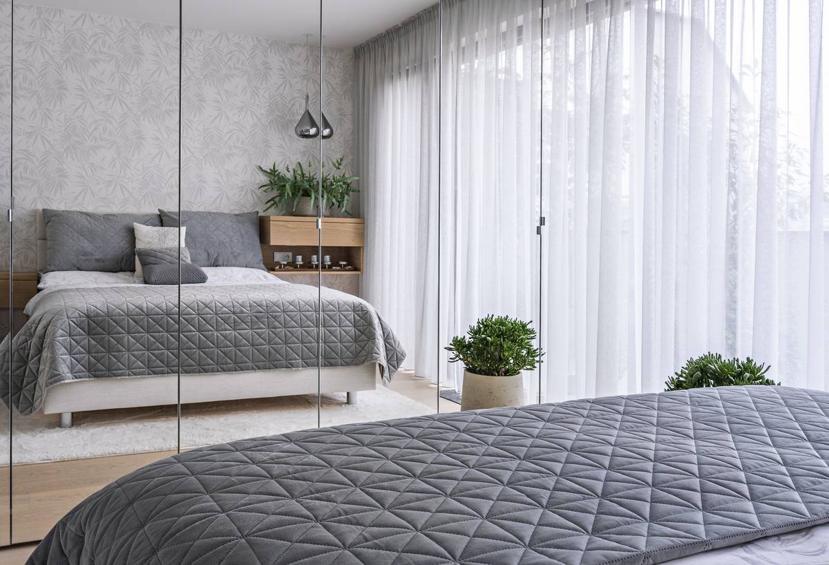Zrcadlové skříně jsou nejenom v předsíni, ale také v hlavní ložnici.