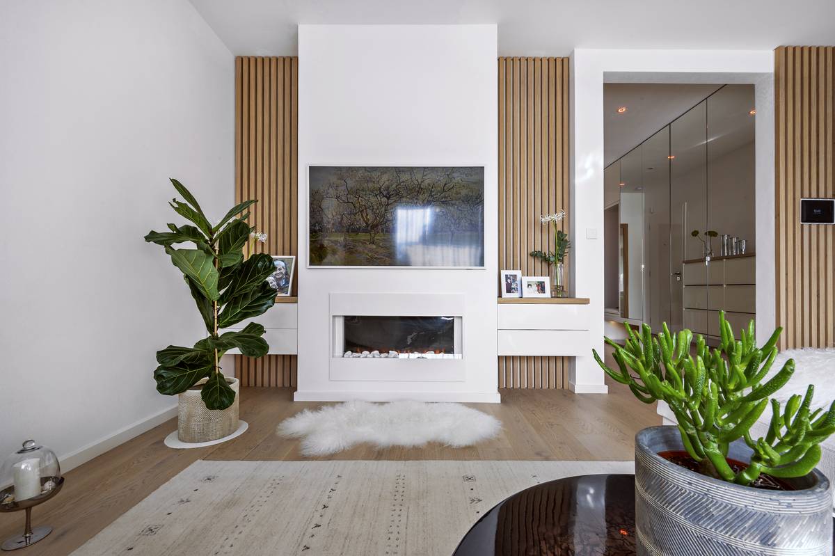 Atmosféru v obývacím pokoji protepluje lihový krb.