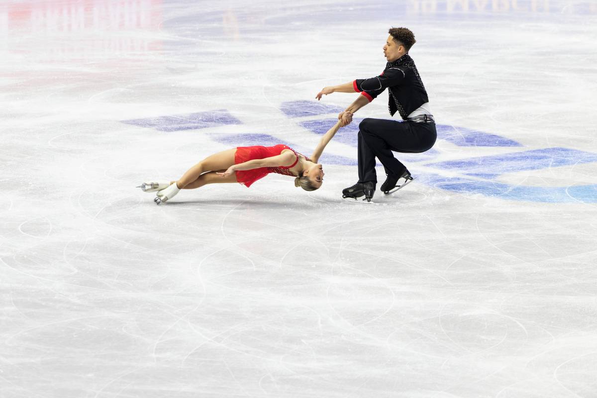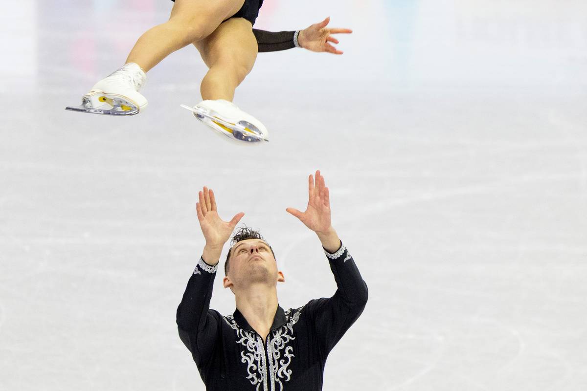 Následně se představili závodníci ve sportovních dvojicích, průběžně vede německý pár Minerva Fabienne Haseová s Nikitou Volodinem.