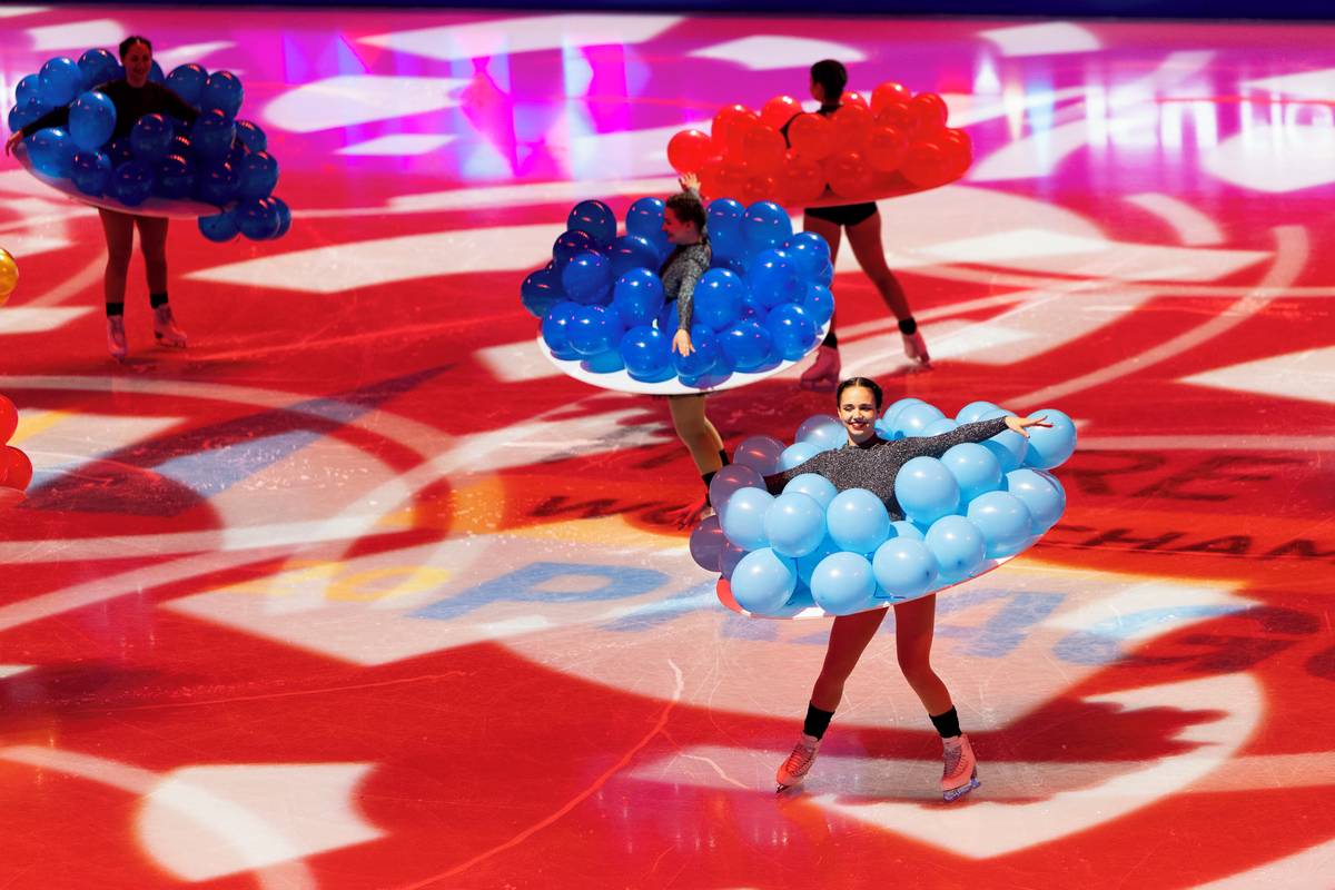 ...ani zajímavé rekvizity, odkazující na to, jak krasobruslení propojuje sport a umění.