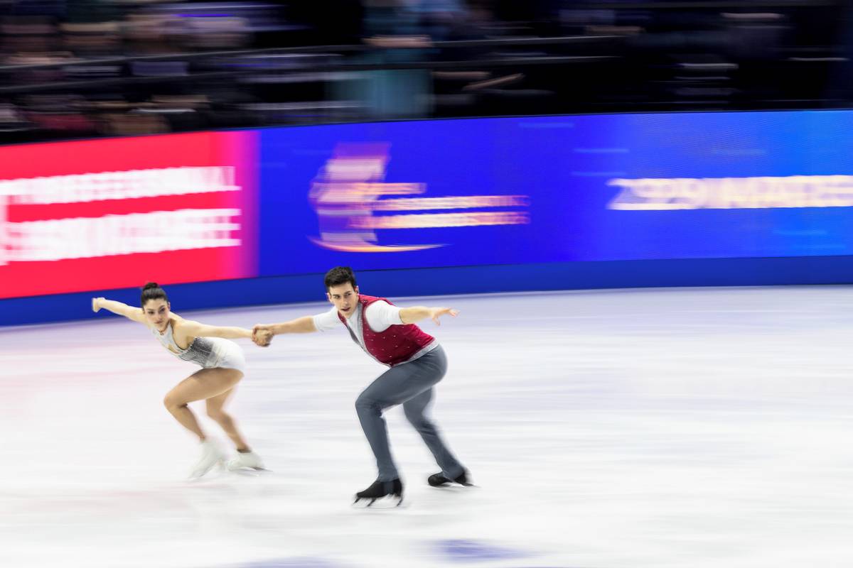 Fanoušky fascinuje i rychlost, v níž krasobruslaři předvádějí své umění. Na snímku opět Italové Irma Caldaraová a Riccardo Maglio.
