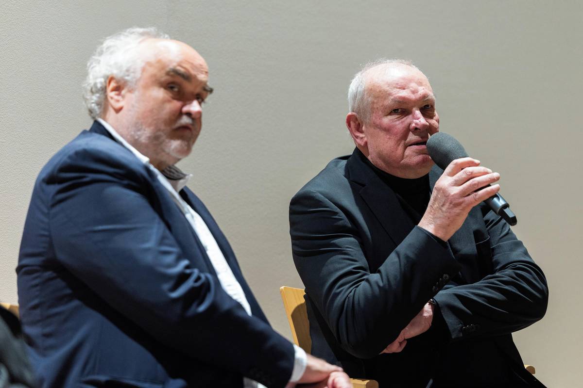 „Myslím, že na Pražském hradě by se měly dělat všechny výstavní projekty v takové míře závažnosti, aby Pražský hrad byl vždy spoluhráčem té akce, aby byl integrální součástí projektu,“ dodal na čtvrtečním představení přehlídky její architekt Josef Pleskot (vpravo).