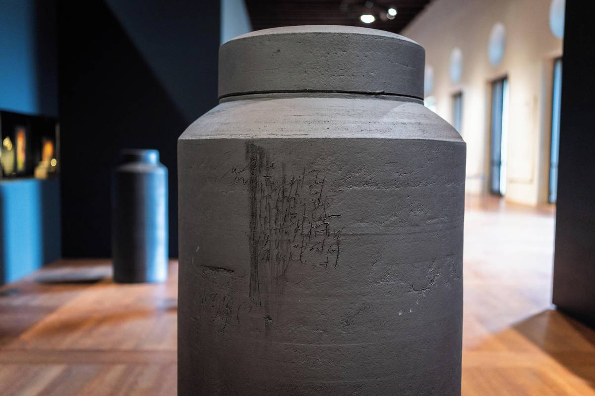 Na takzvané nádoby vzpomínek vyryl Edmund de Waal citáty z básnické sbírky Elegie z Duina od Rainera Marii Rilkeho. „Ale zase jako by je hned rozškrábal, takže to jsou jen takové stopy paměti,“ objasňuje Jiří Fajt.