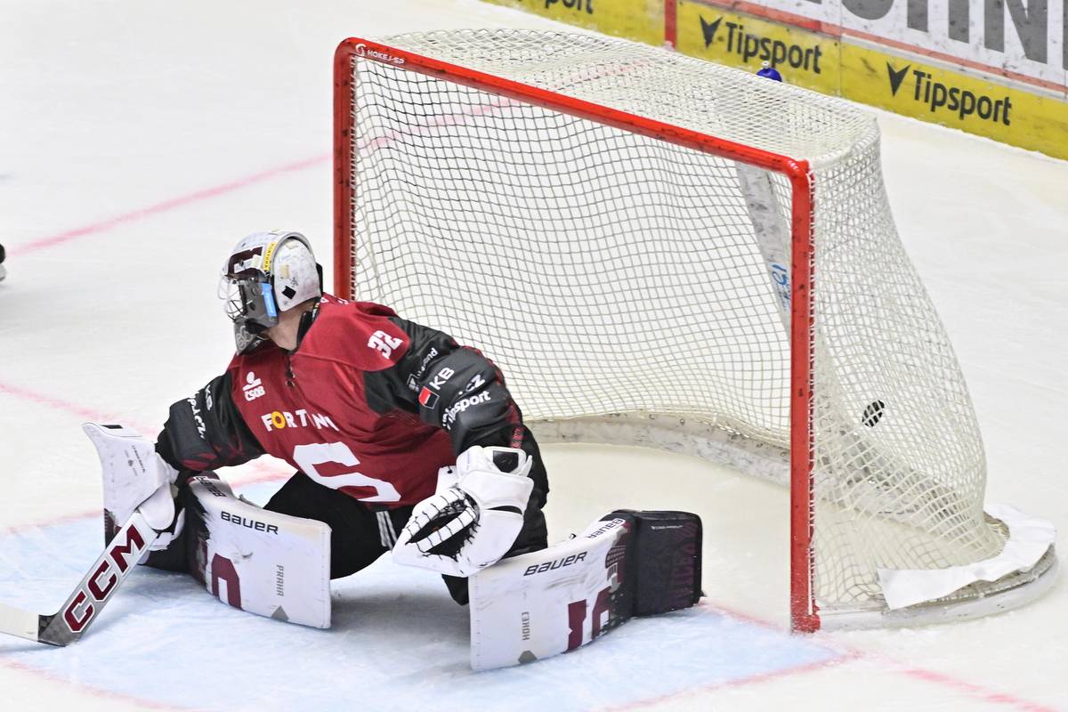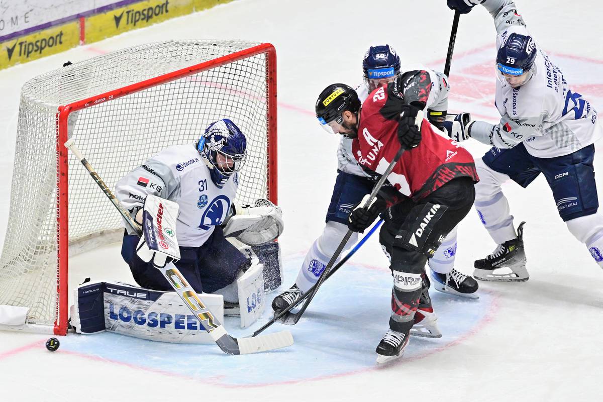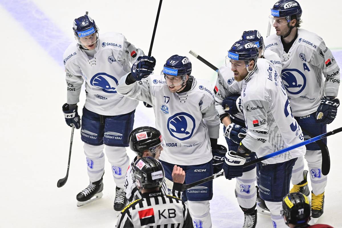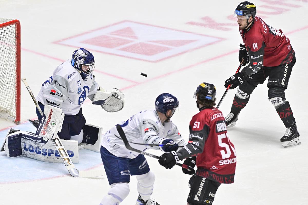 Plzeňský brankář Nick Malík si připisuje zákrok.