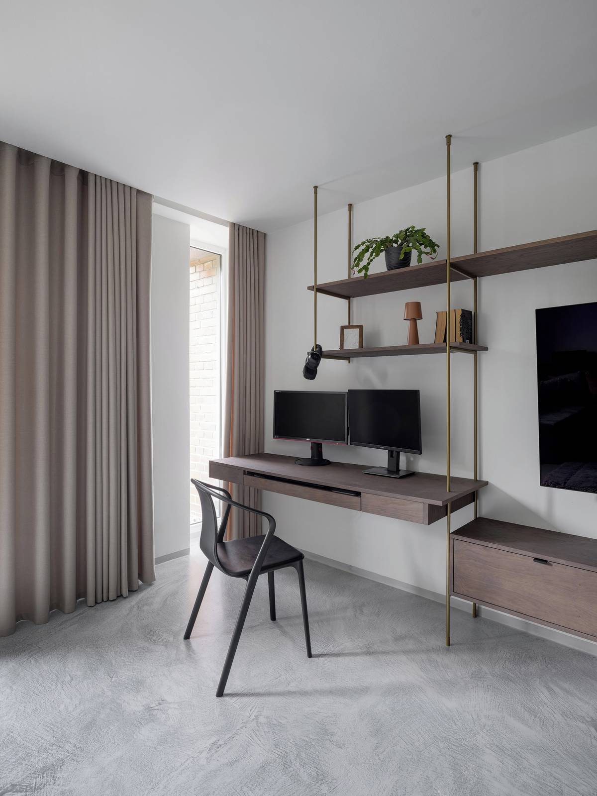 Závěsy jsou instalovány do nik v podhledech. Ty byly v domě už původně.