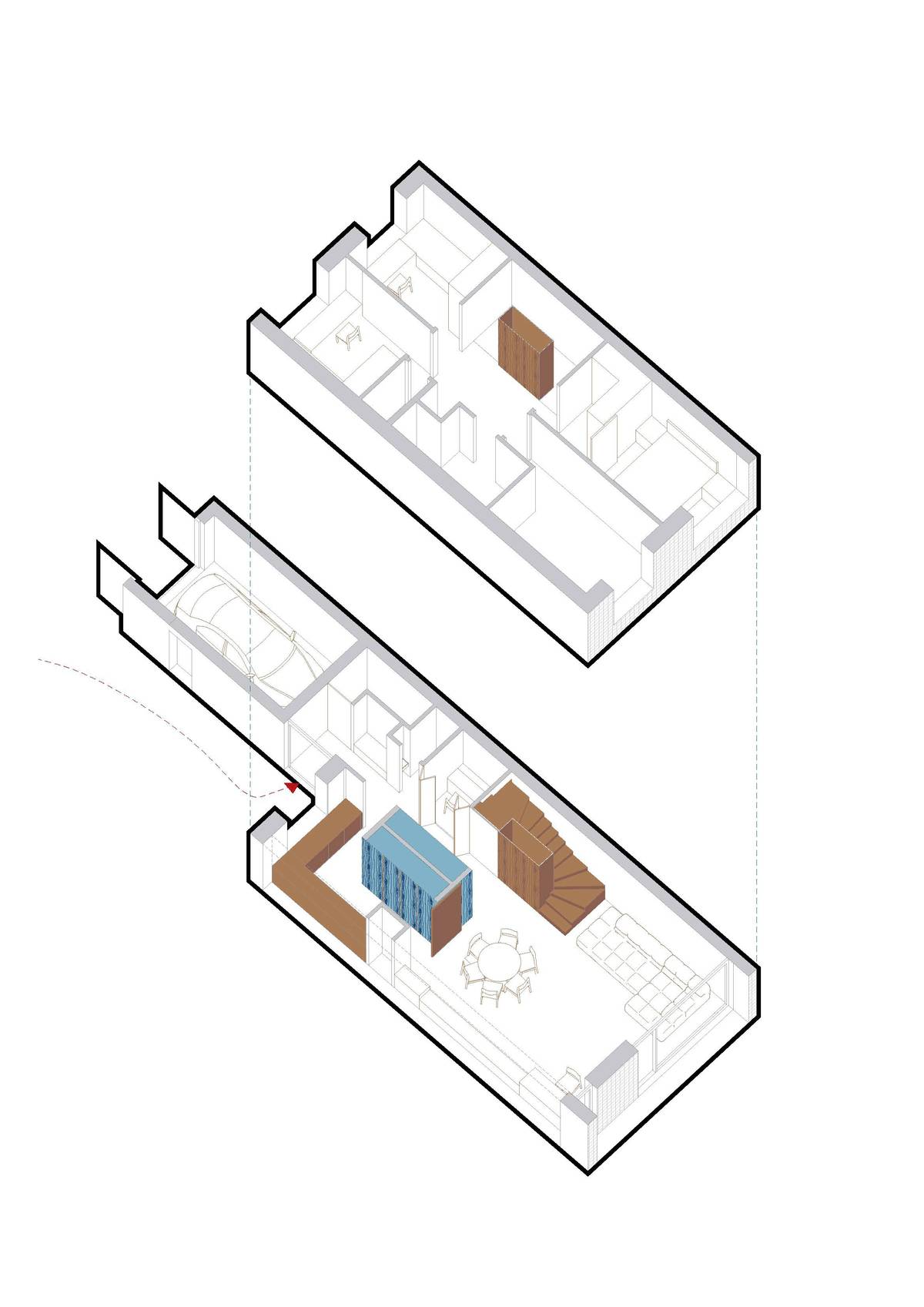 Zatímco v horním podlaží nebylo třeba měnit dispozici, v přízemí ji upravili.
