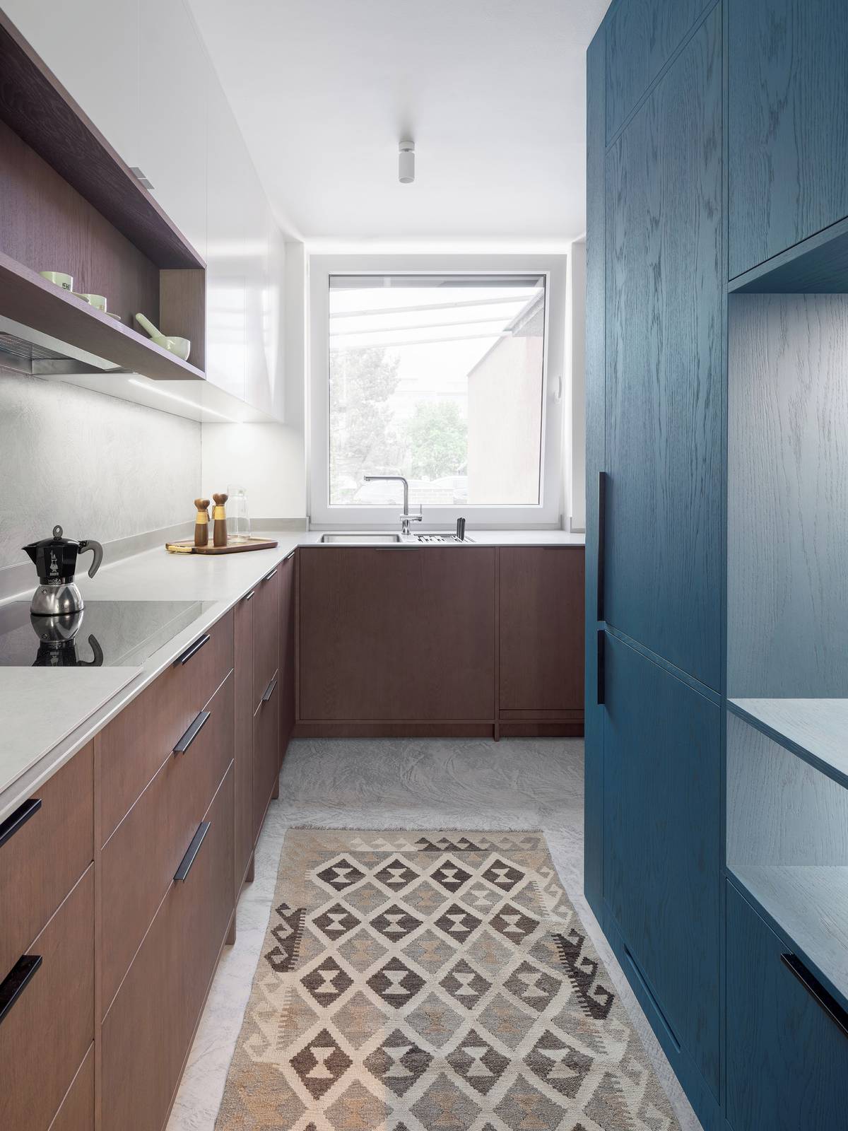 Nábytkový kubus je od zbytku interiéru výrazně barevně odlišený.