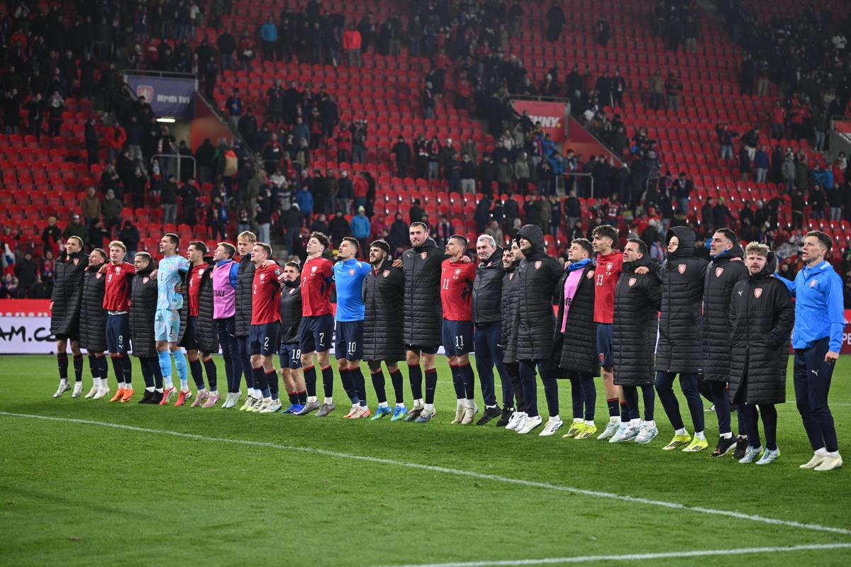 Česká děkovačka po postupu.