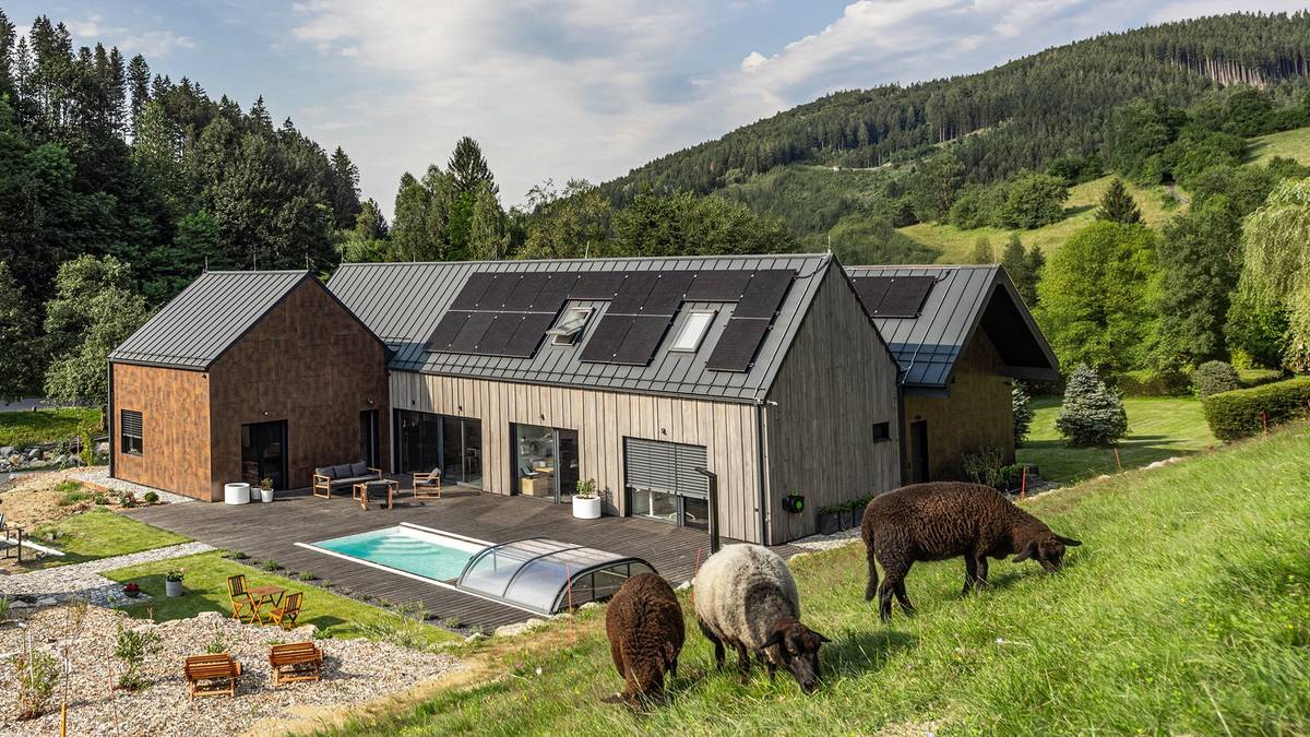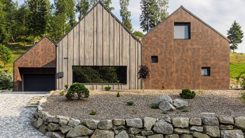 Při pohledu ze zadní části domu vyniknou tvary stavby.