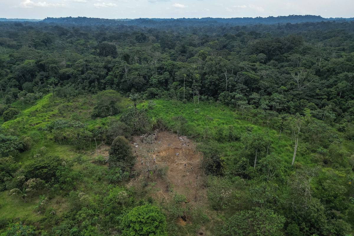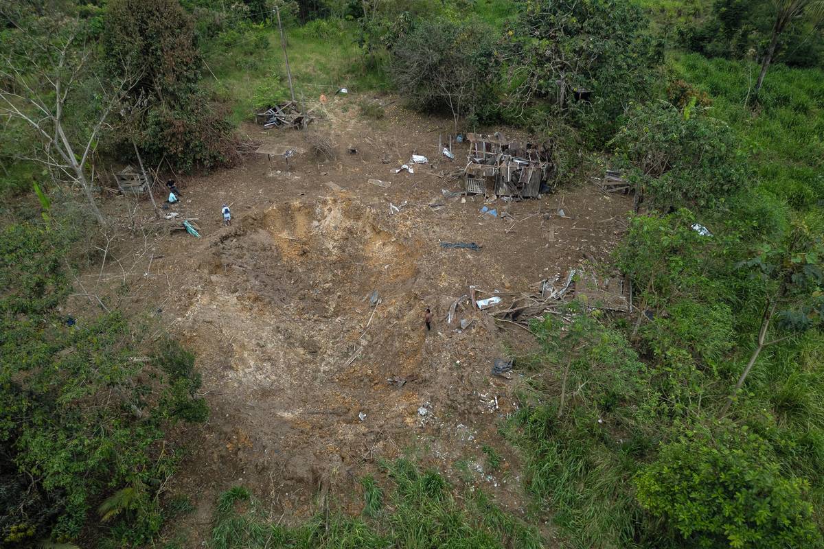 (Letecký pohled na škody způsobené bombou svrženou ekvádorskou armádou v oblasti Lago Agrio v provincii Sucumbios v Ekvádoru, na hranicích s Kolumbií, vyfoceno 18. března.)