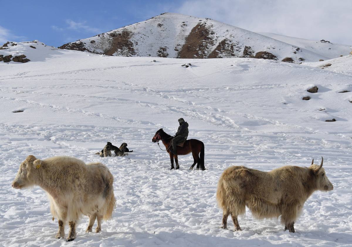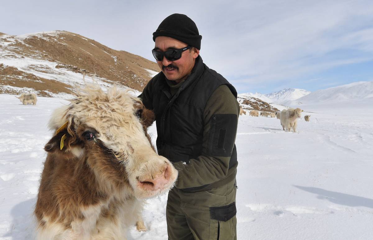 „V noci klesá teplota na -40 °C… Ale jakové se mohou volně pást, milují hory a chlad,“ řekl agentuře AFP třicetiletý kyrgyzský pasák Amantur Akmatov.