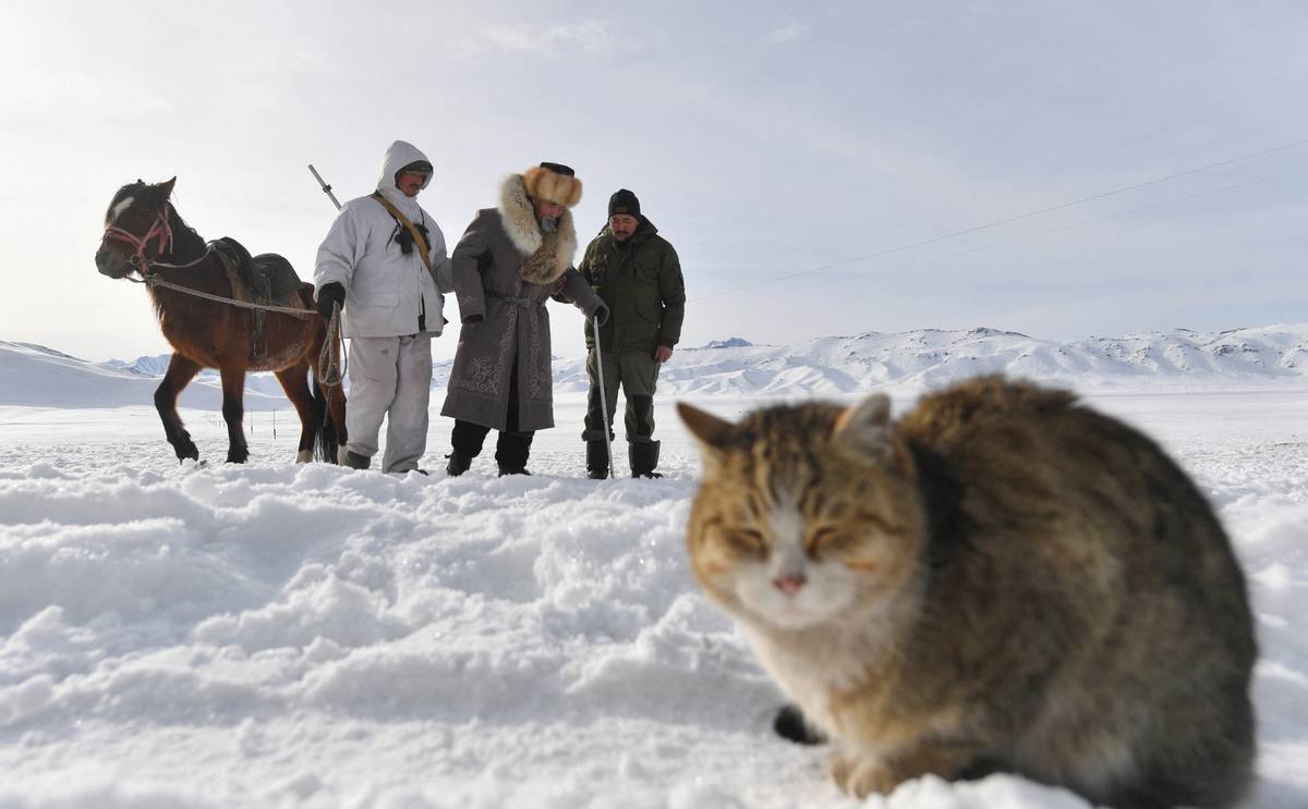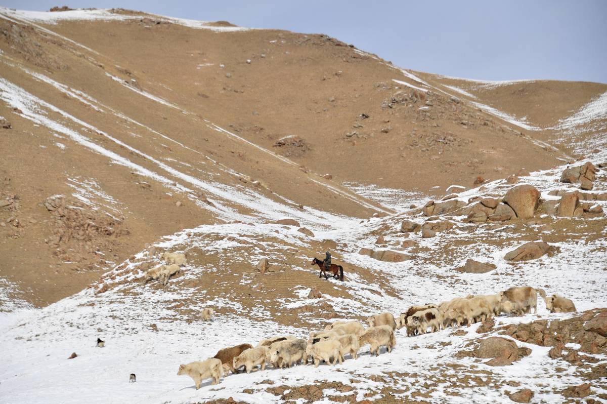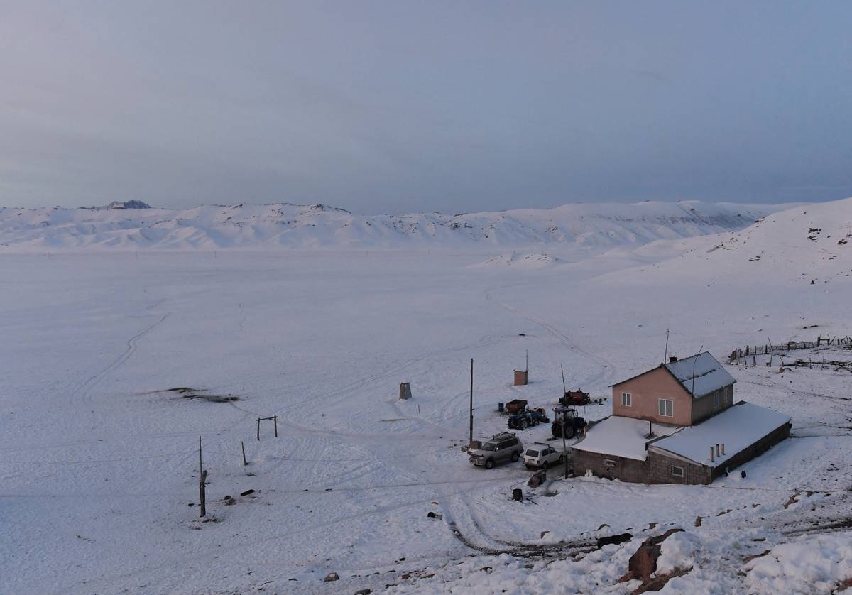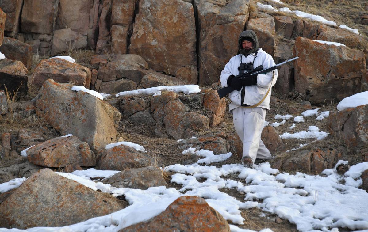 V posledních měsících se jich zhruba 20 stalo kořistí vlků. Vyzbrojen loveckou puškou a oděný do zcela bílých montérek, tlusté čepice a kukly, nasedá Amantur každé ráno na koně, aby vyrazil na dvouhodinovou hlídku.