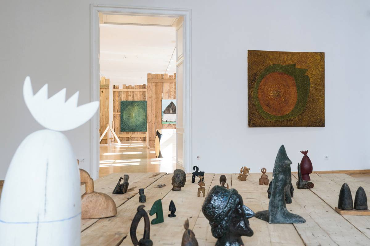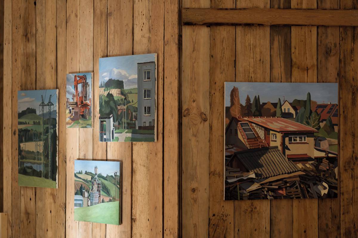 Na fotografii jsou malby Jakuba Dvořáka. Ta pravo se jemnuje Střechy a dřevo, pochází z roku 2025.