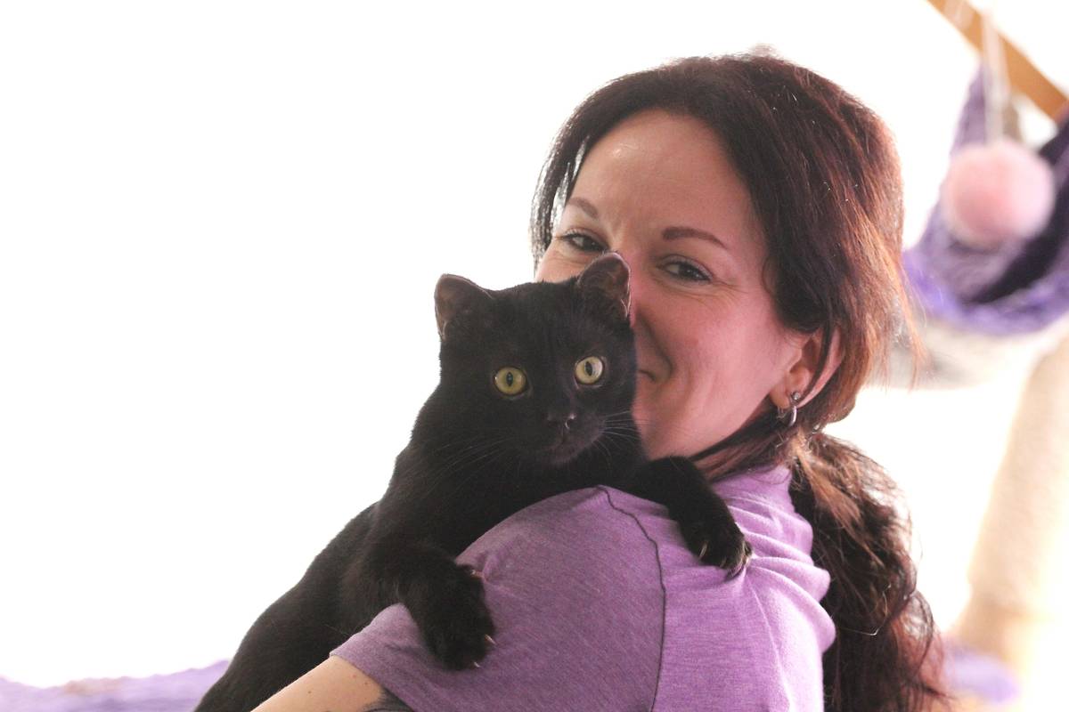 Lucie Plíhalová s Čertíkem, který před rokem přežil výbuch plynu v kočičí kavárně.